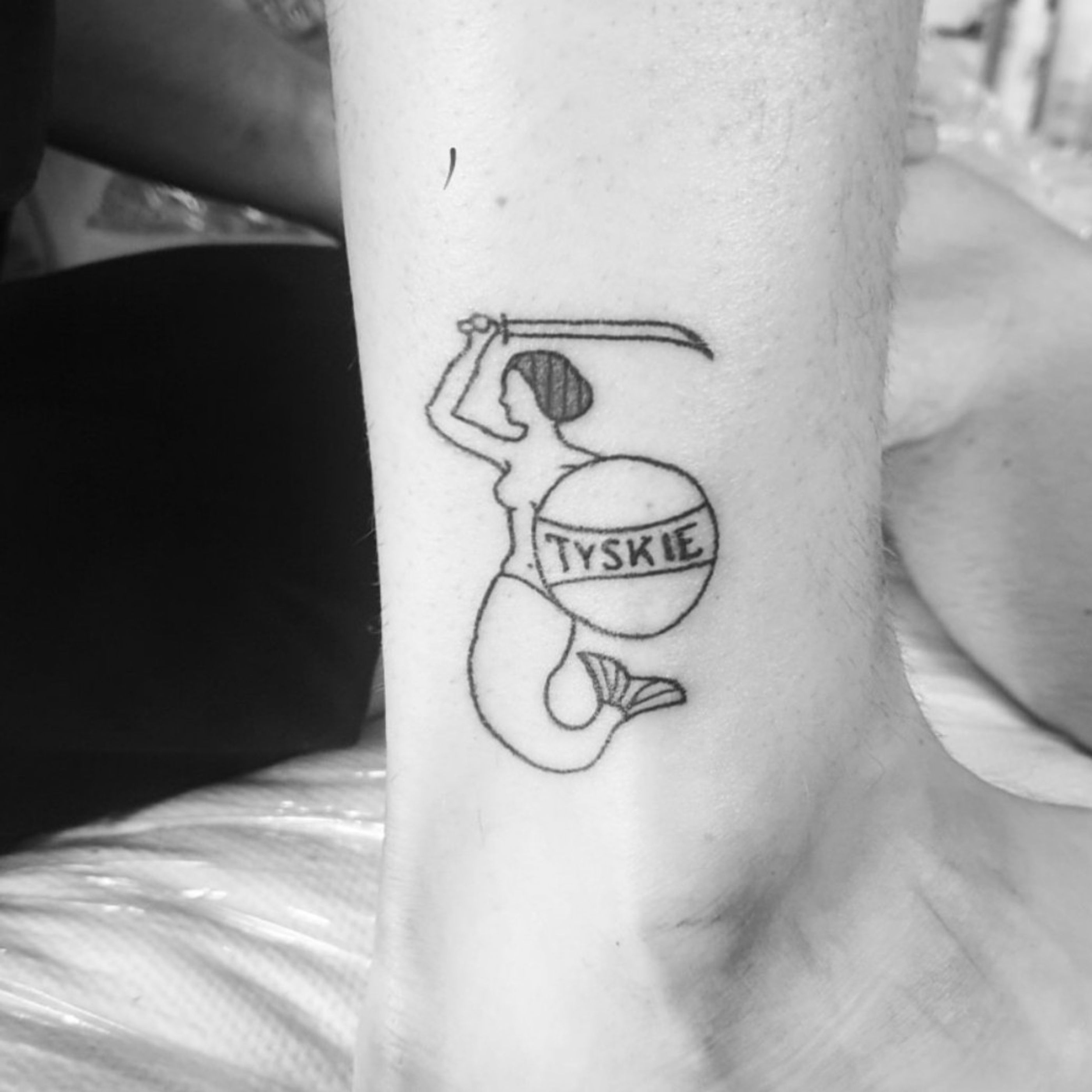 Symbol of Warsaw with Tyskie Bottlecap #ignorantstyle #mermaid #handpoke #handpoked #handtattoo #sticknpoke #stickandpoke #ignorant