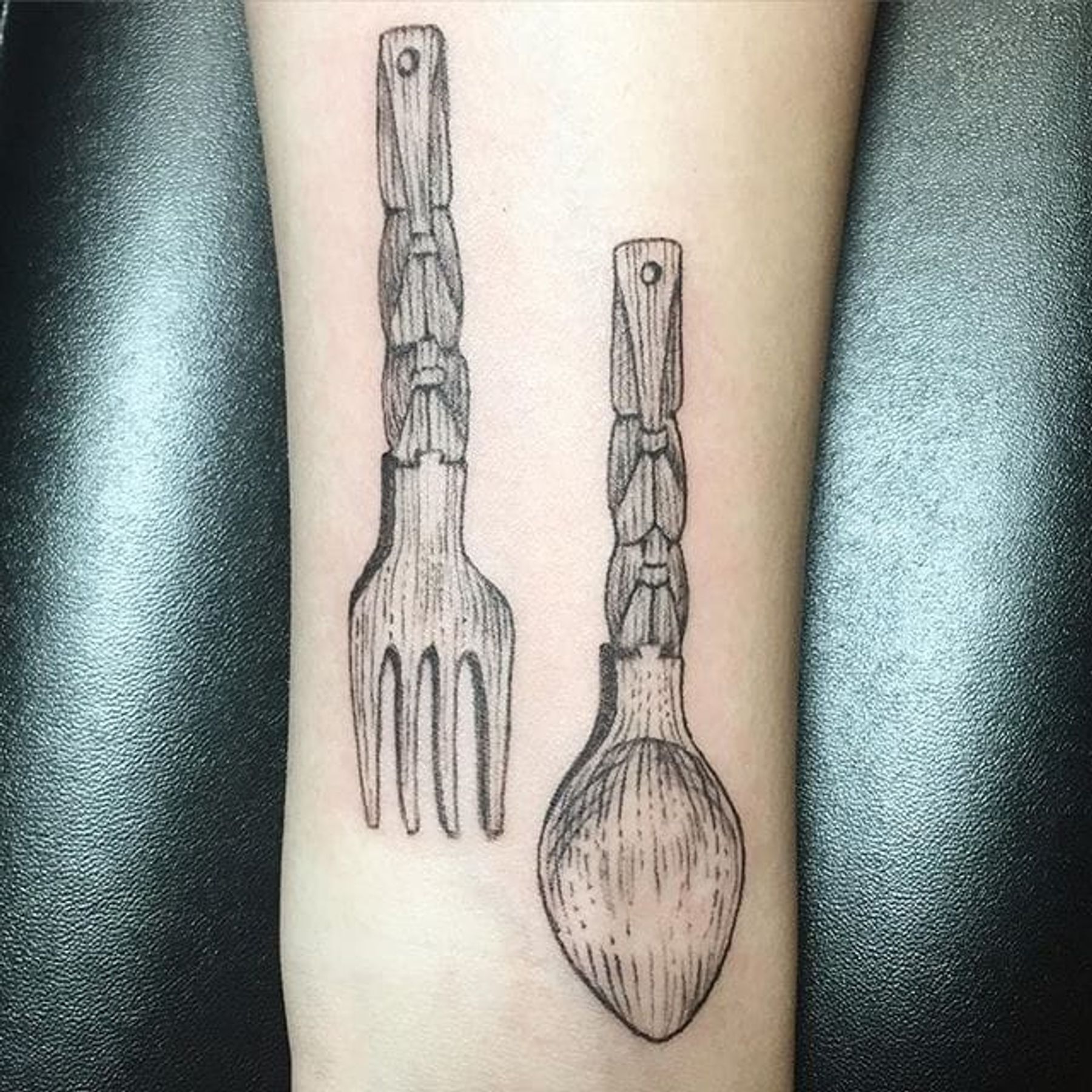 Traditional Filipino wooden utensils by Maggie Cho Brophy. #blackwork #linework #MaggieChoBrophy #fineline #Filipino #wooden #utensils #fork #spoon