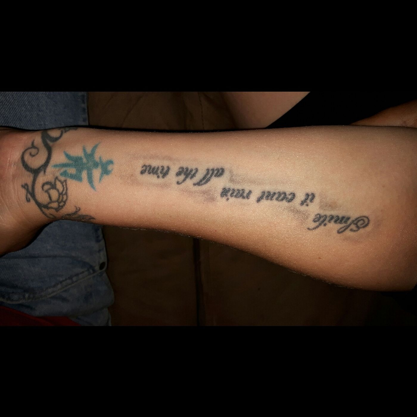 My favorite quote from the crow when I am having one of those days it keeps me going. Chines read faceing so others can read it meaning desire to balance the meaning of strength which is on my right wrist. And part of my bracelet tattoo
