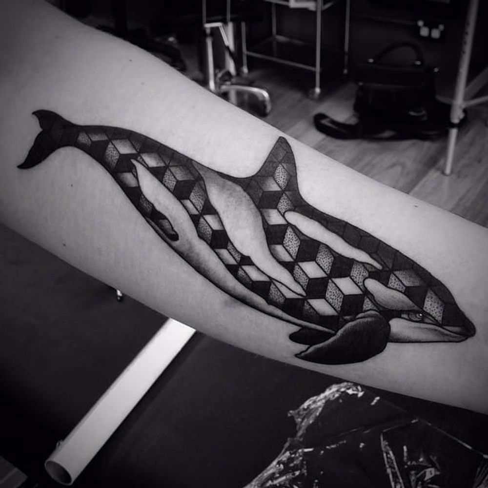 Whale Tattoo by Ben Doukakis #whale #whaletattoo #whaletattoos #blackwork #blackworktattoo #blackworkwhale #dotwork #dotworkwhale #contemporarytattoo #contemporarytattoos #seacreature #BenDoukakis