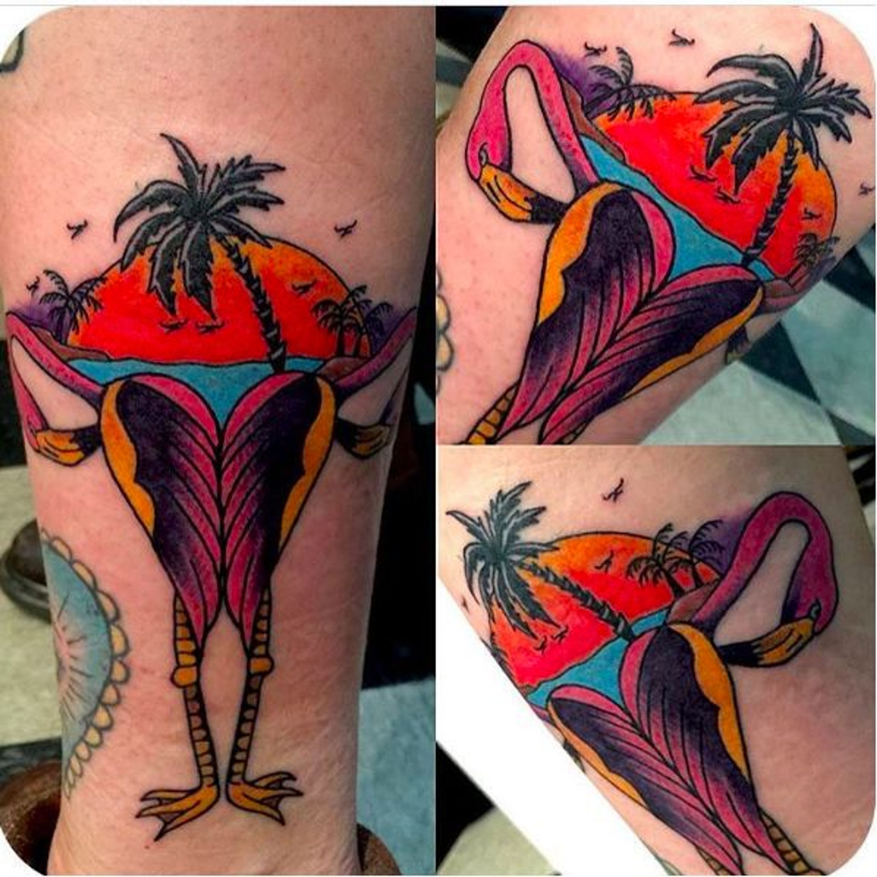 Down for these ovary-flamingoes partying on a beach. By Joe Dakin. #traditional #ovaries #flamingo #feminist #feminism