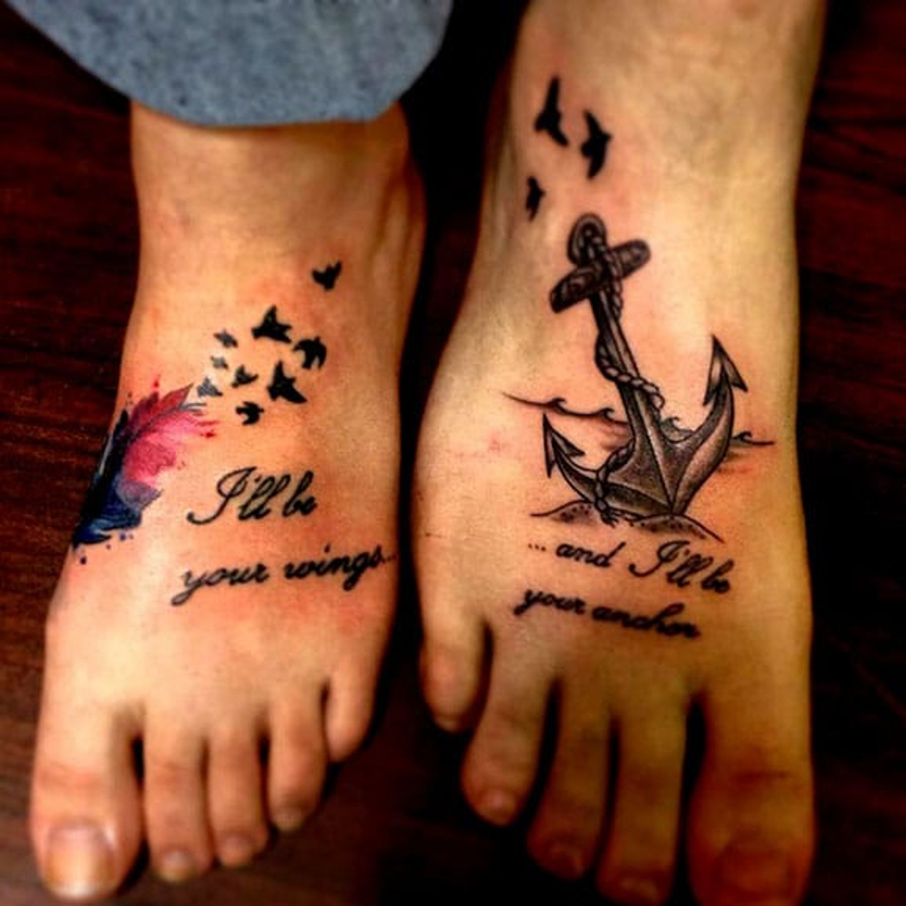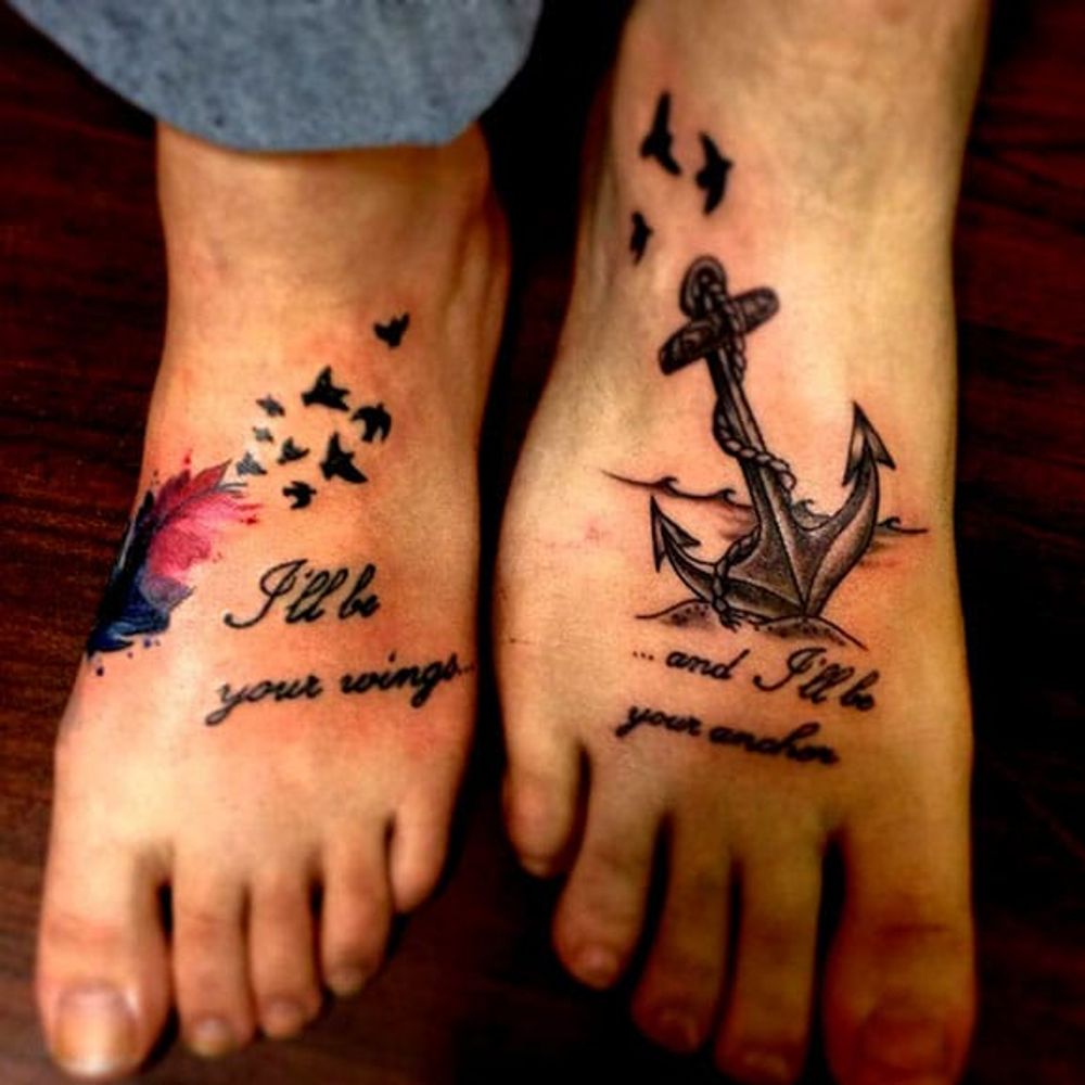 I'll be your wings... and I'll be your anchor #siblingtattoo #brother #sister #connectingtattoos #feather #anchor
