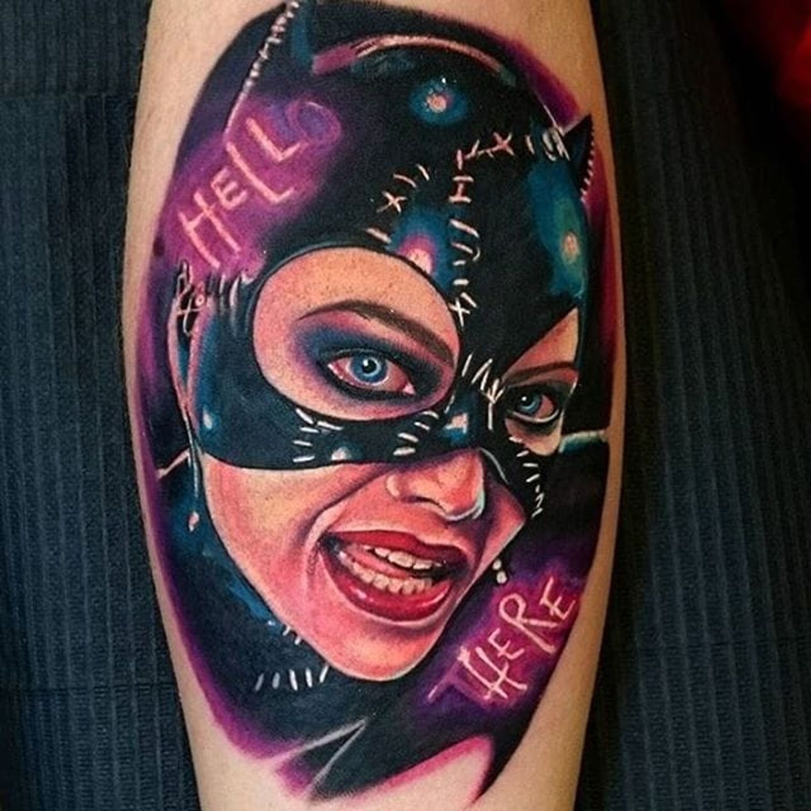 Catwoman portrait tattoo by @madamefink #Catwoman #Batman #DCComics #portrait #madamefink