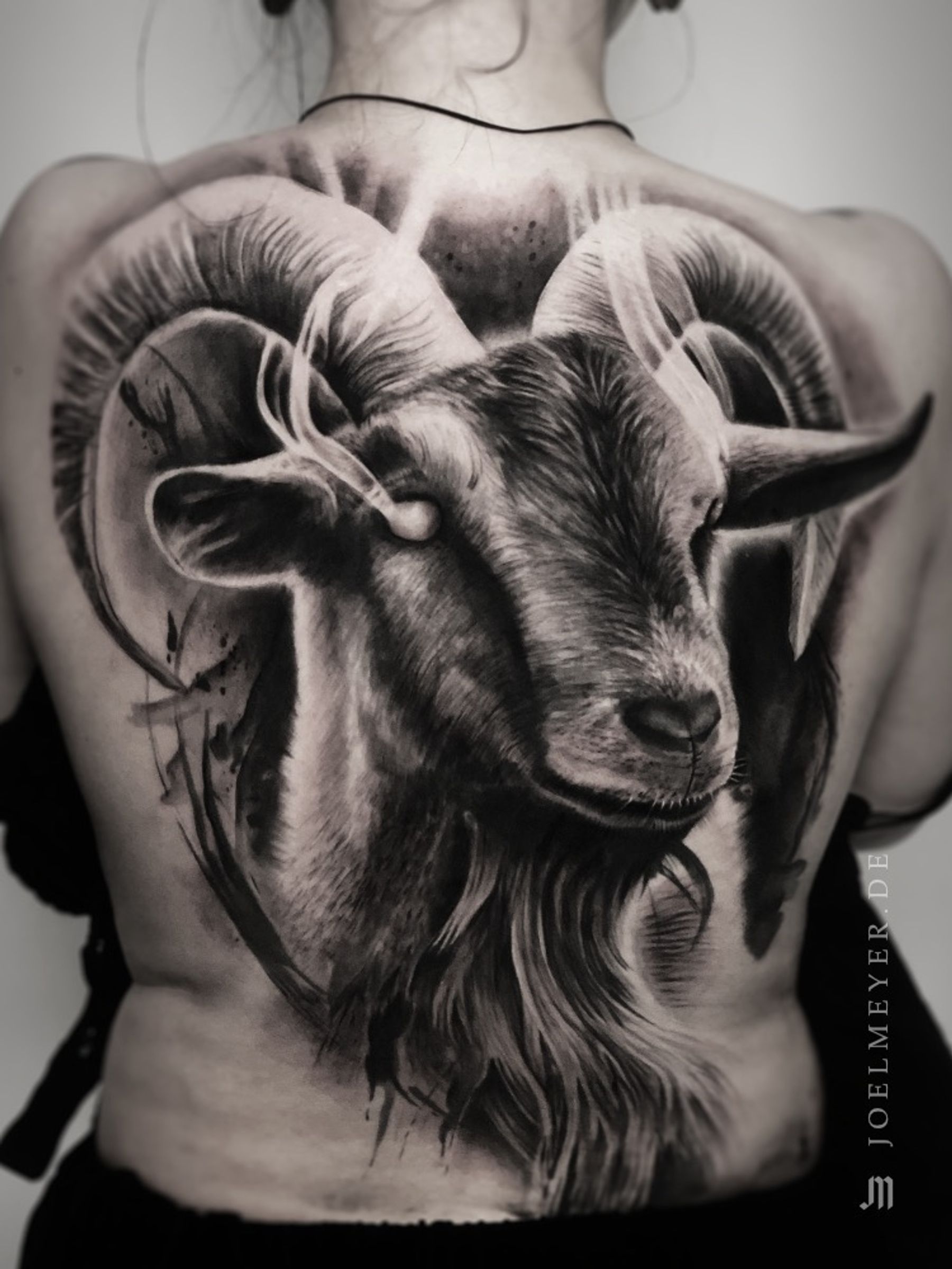 Goat Realistic Tattoo Black and Grey by Joel Meyer Tattoo Studio Laval 53 France