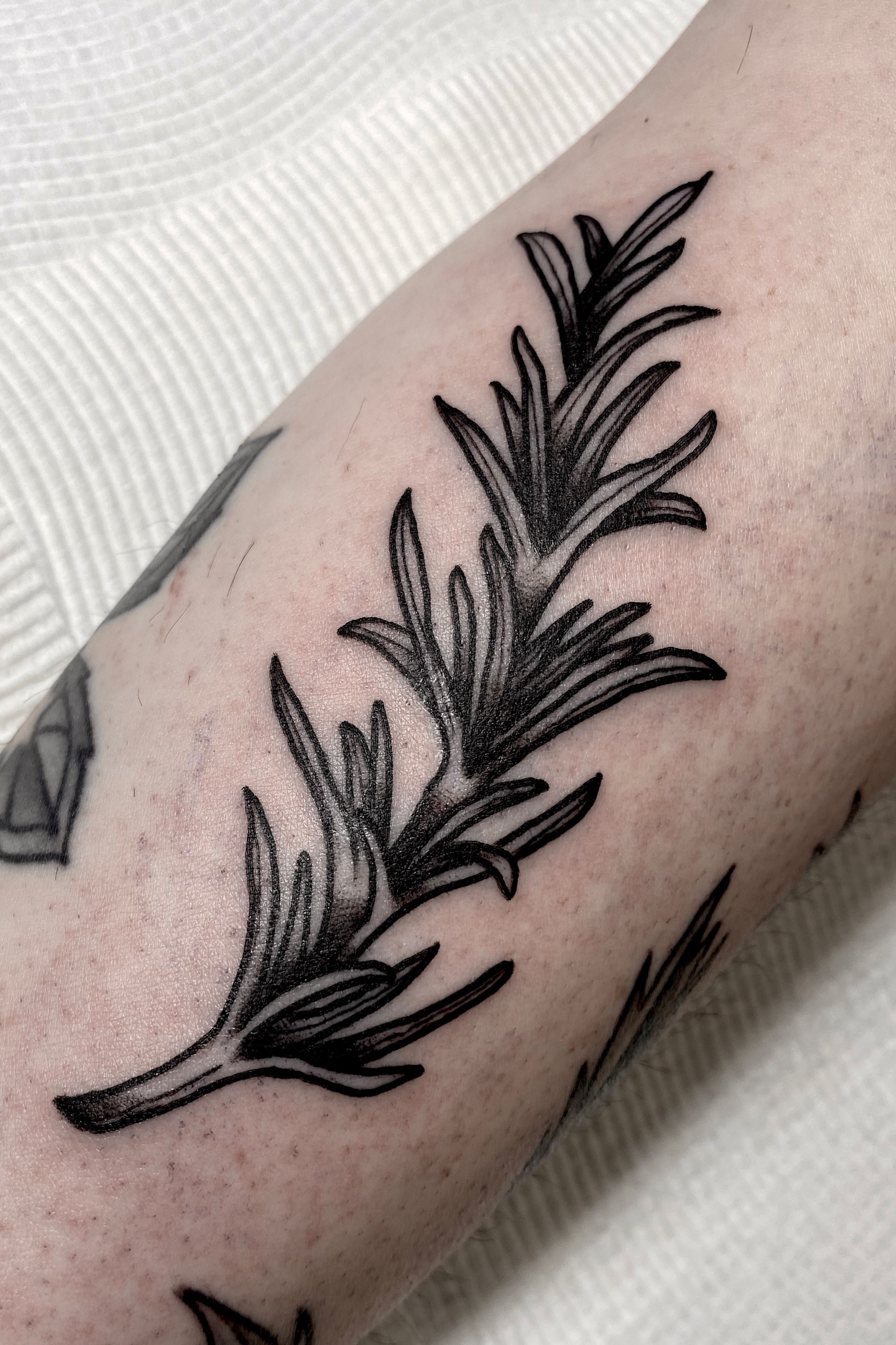 “I plucked a sprig of rosemary from the pot in the windowsill, and as I inhaled its fresh scent, something flashed in my mind. I went to the pantry and took out a jar of wildflower honey. I held it up to make sure I had enough, and the sun lit it up like a jar of gold. There was that flash again- I almost had it, but it slipped away.” #tattoos #tattooideas #blacktattoo #tattooinfluencer #tattooartist #sydneytattoo #australiatattoo #rosmary #rosmarino #rosmarytattoo #authentink #leaftattoo #neotraditionaltattoo #neotraditional #foodtattoo #smelltattoo #tatuaggio #iltatuaggio #melbournetattoo #sydneytattoo #brisbanetattoo #perthtattoo #adelaidetattoos #goldcoasttattoo #romatattoo #italiatattoo #amsterdamtattoo