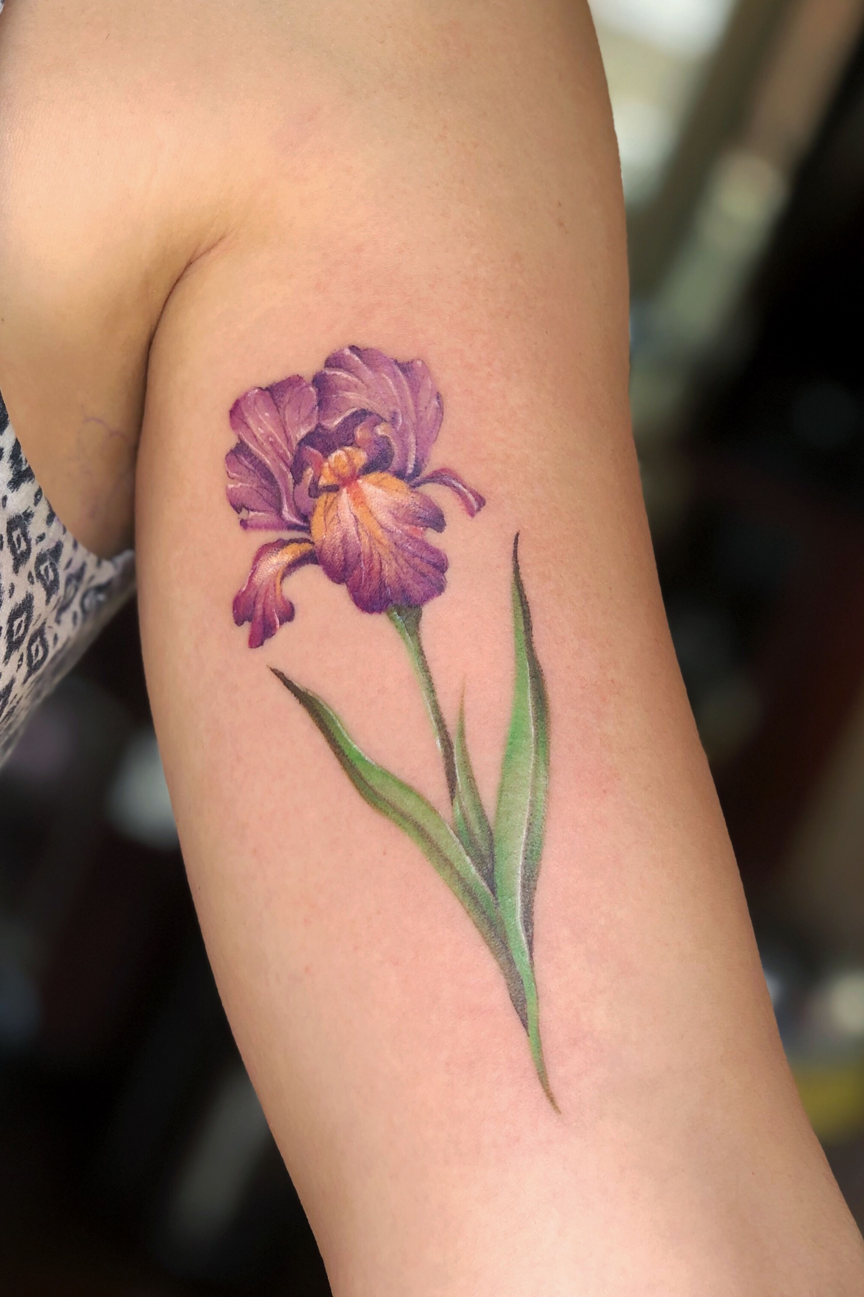 Iris #tattoo #tattoos #tatts #uk #nottingham #colourfultattoos #watercolourtattoo #flowertattoo #botanicaltattoo #flowers #colour #uktattoos #nottinghamtattoos #inked #ink #colours #floral #floraltattoo #tattooideas #tattoodesign #details #tattoodetails #greenpower #green #detailedtattoos #microrealism #femininetattoos #delicatetattoos