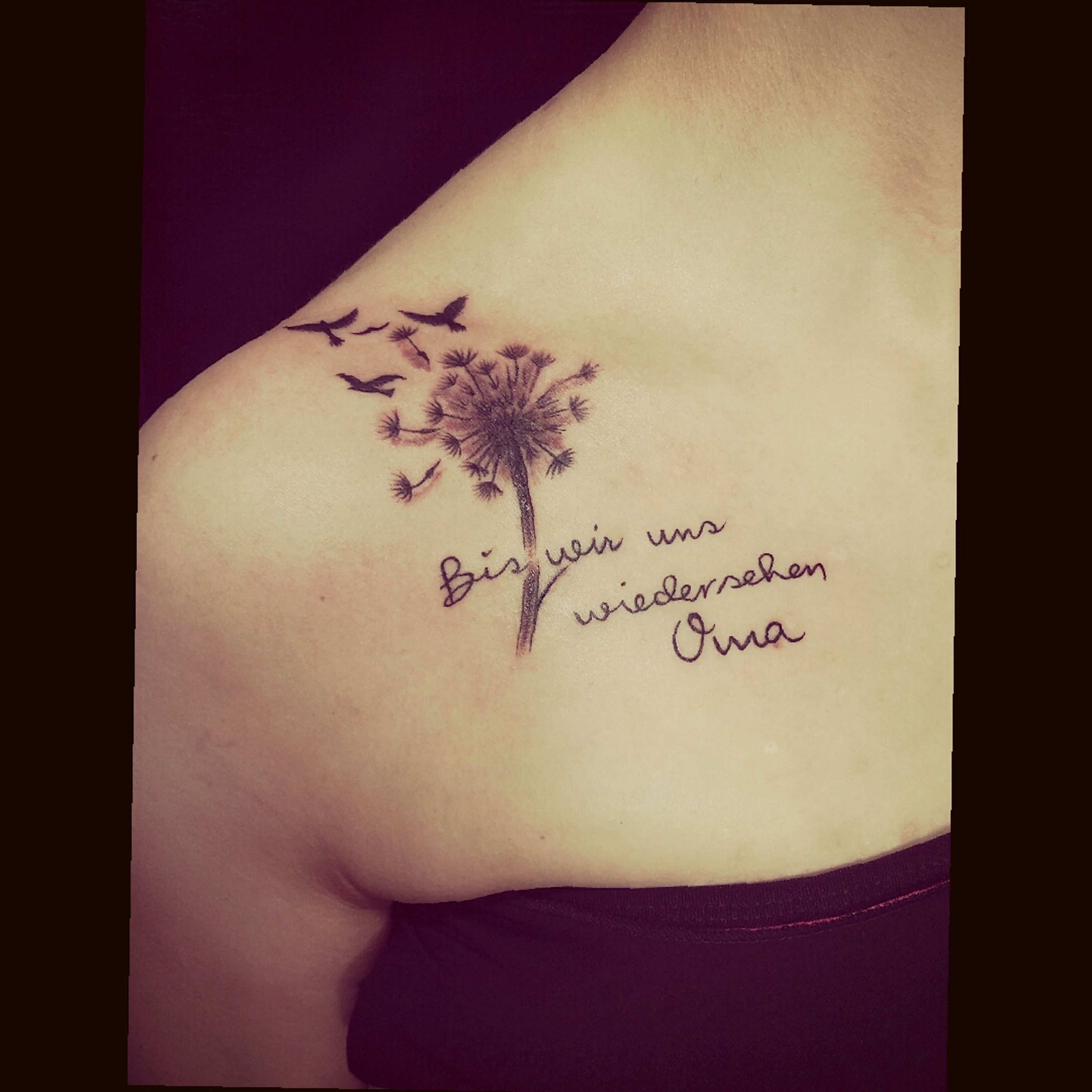 Memorial tattoo for my grandma who passed away a month the ago. Its German for until we meet again!