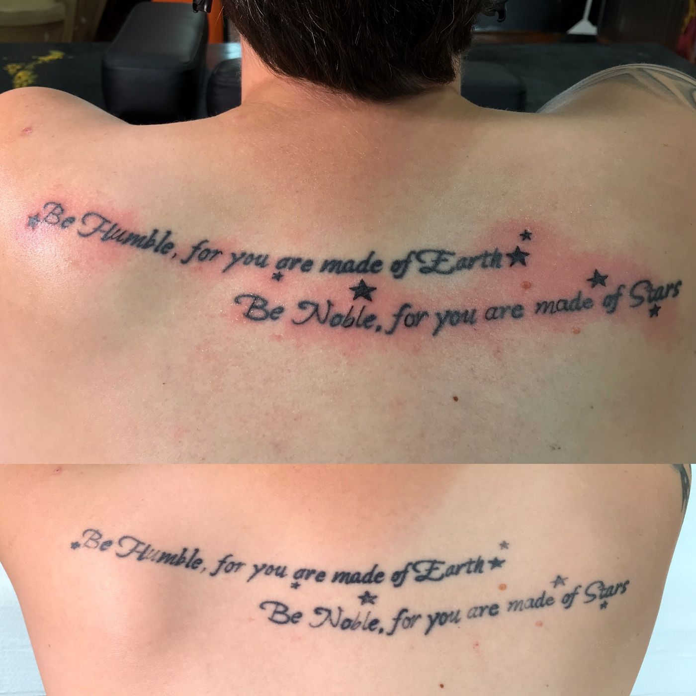 Script and stars touch up on an older tattoo.