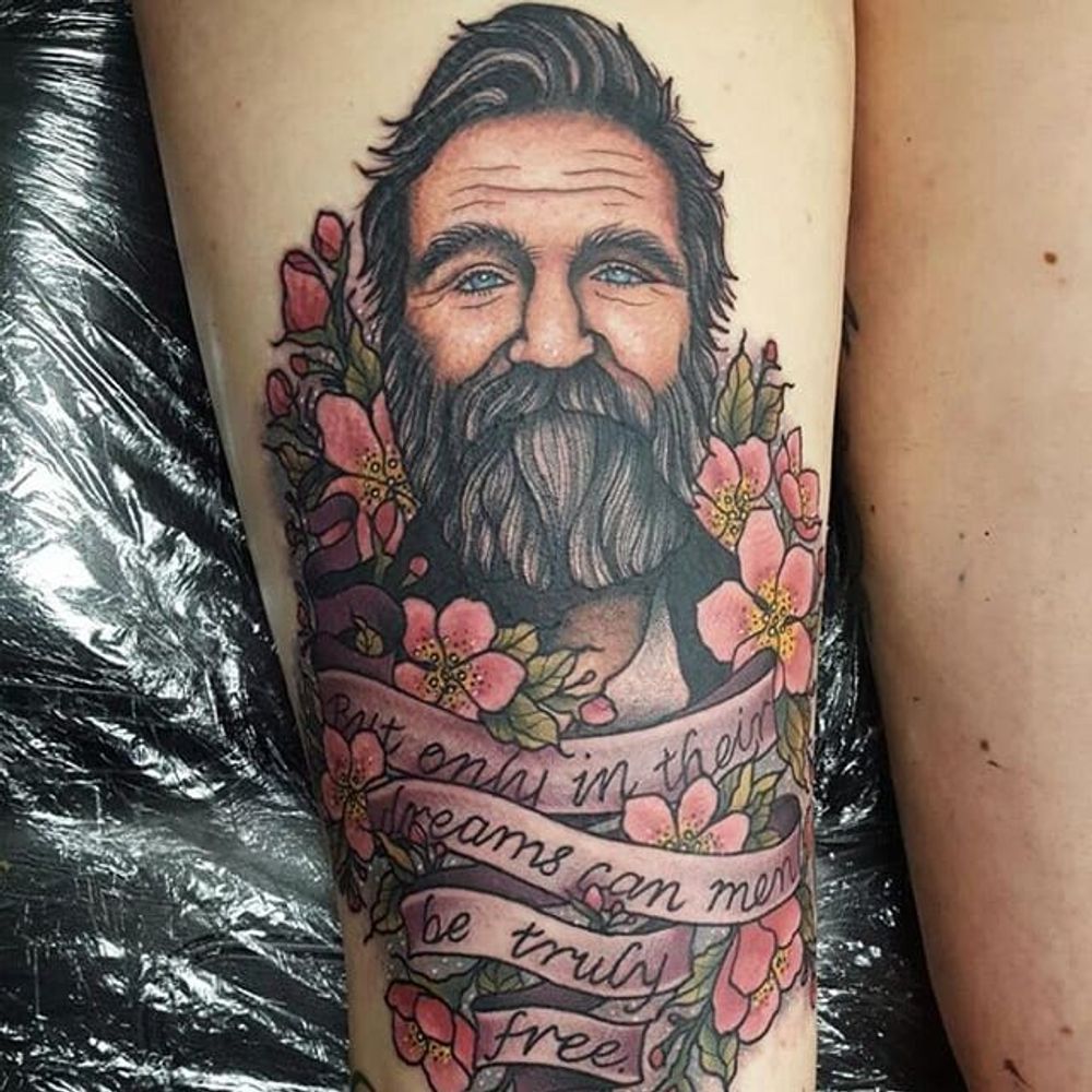 Neo traditional Robin Williams portrait with a quote from Dead Poet's Society. #neotraditional #portrait #RobinWilliams #quote #DeadPoetsSociety #JohnKeating