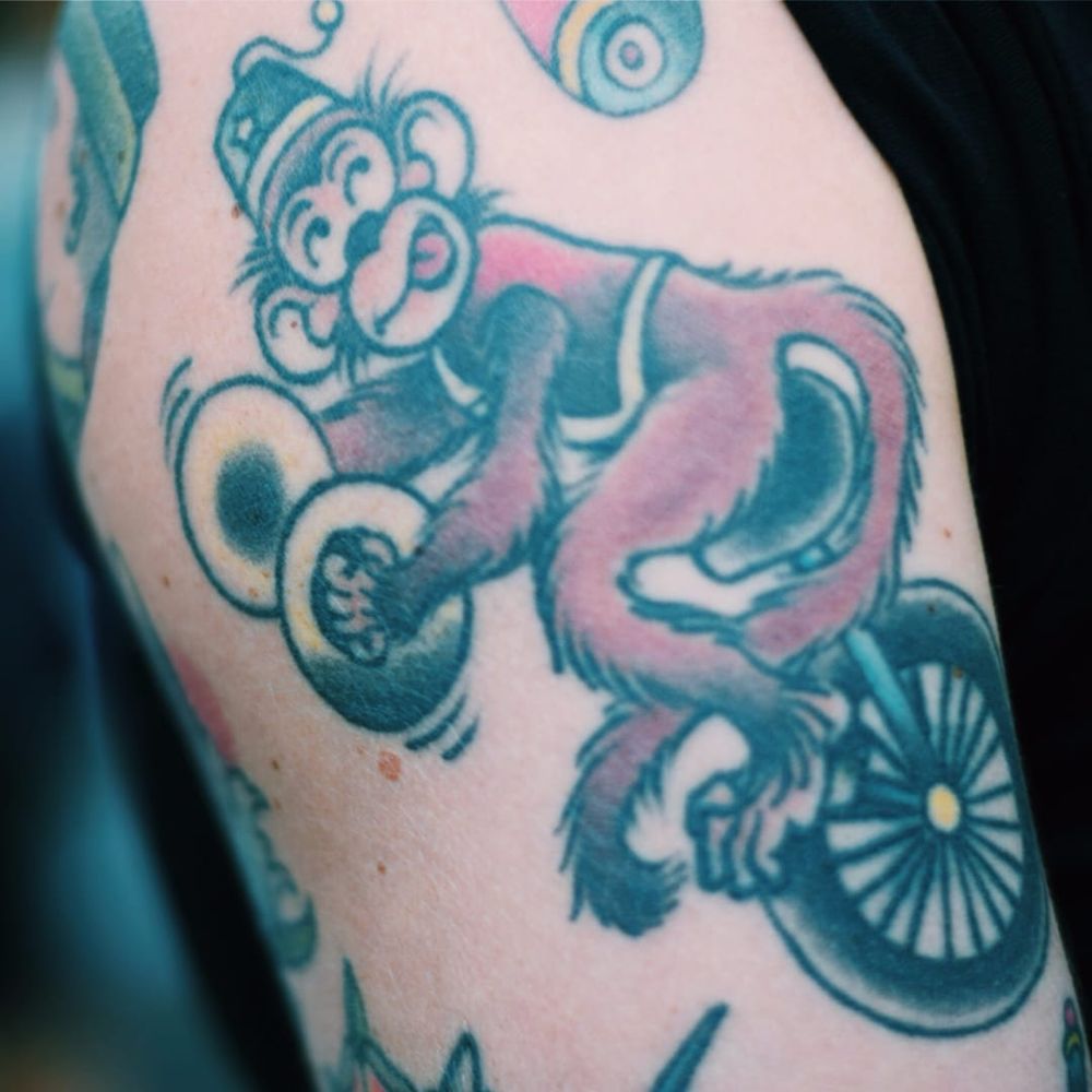 Traditional circus monkey tattoo #monkey #circusmonkey #traditional #traditionalmonkey #unicycling #unicycle #streetstyle #TattooStreetStyle