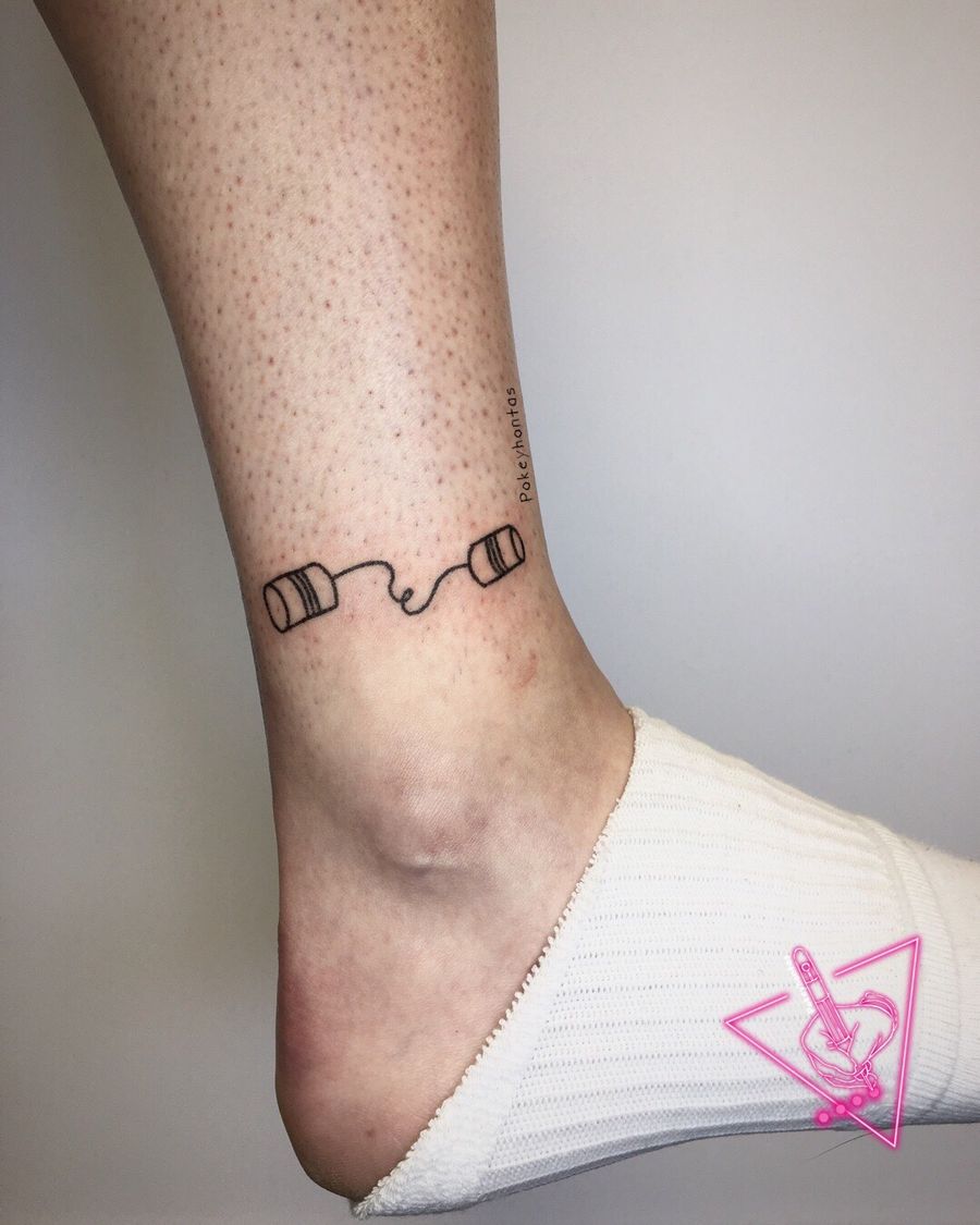 Handpoked Tin Can Telephone Tattoo by Pokeyhontas @ KTREW Tattoo - Birmingham, UK #handpokedtattoo #tattoos #tincantelephone #telephone #stickandpoke #birminghamuk #stickandpoketattoo