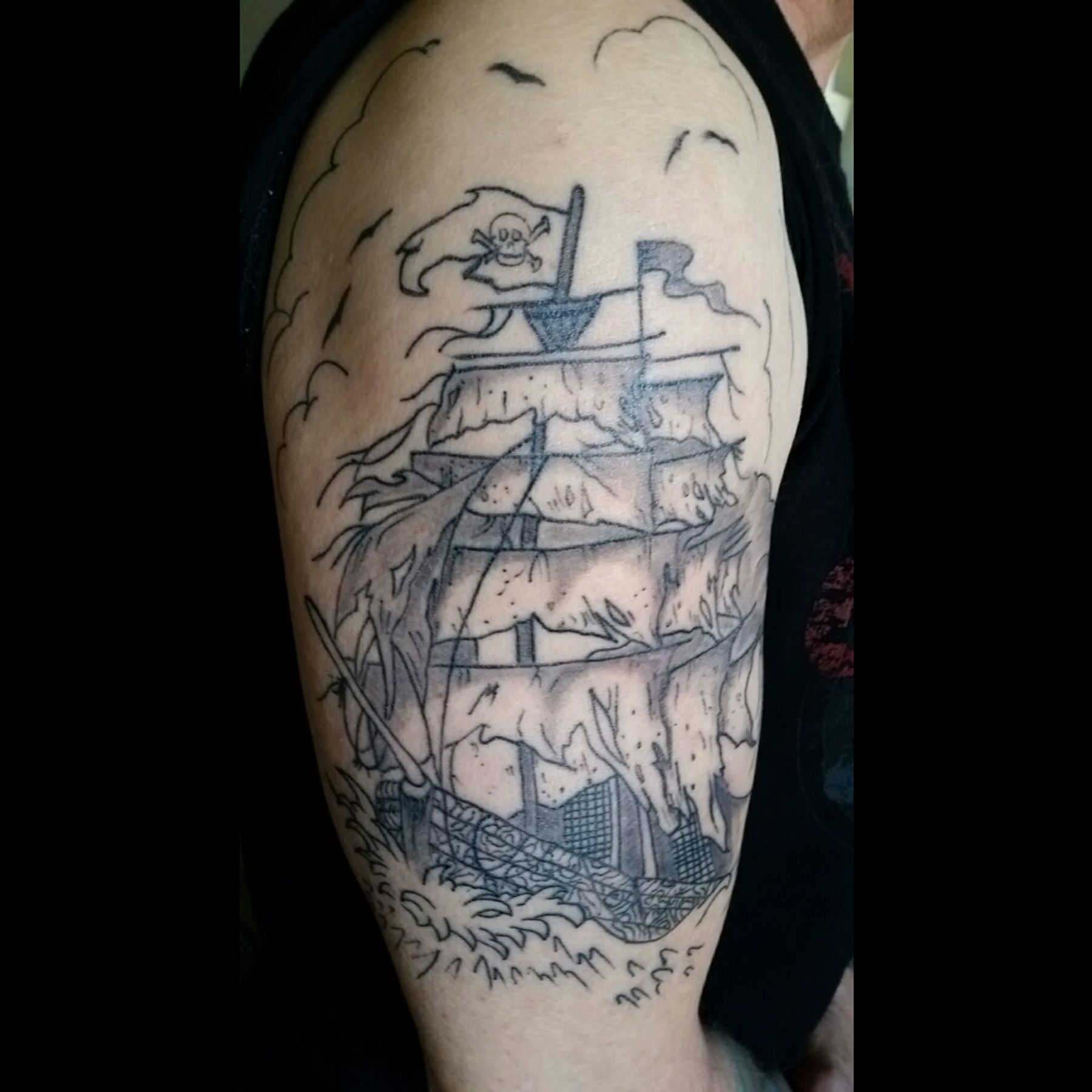 Love my American Traditional Sailing Ship...Great job by Jakks at Steel Dragon Tattoo in Lloydminster Alberta Canada!