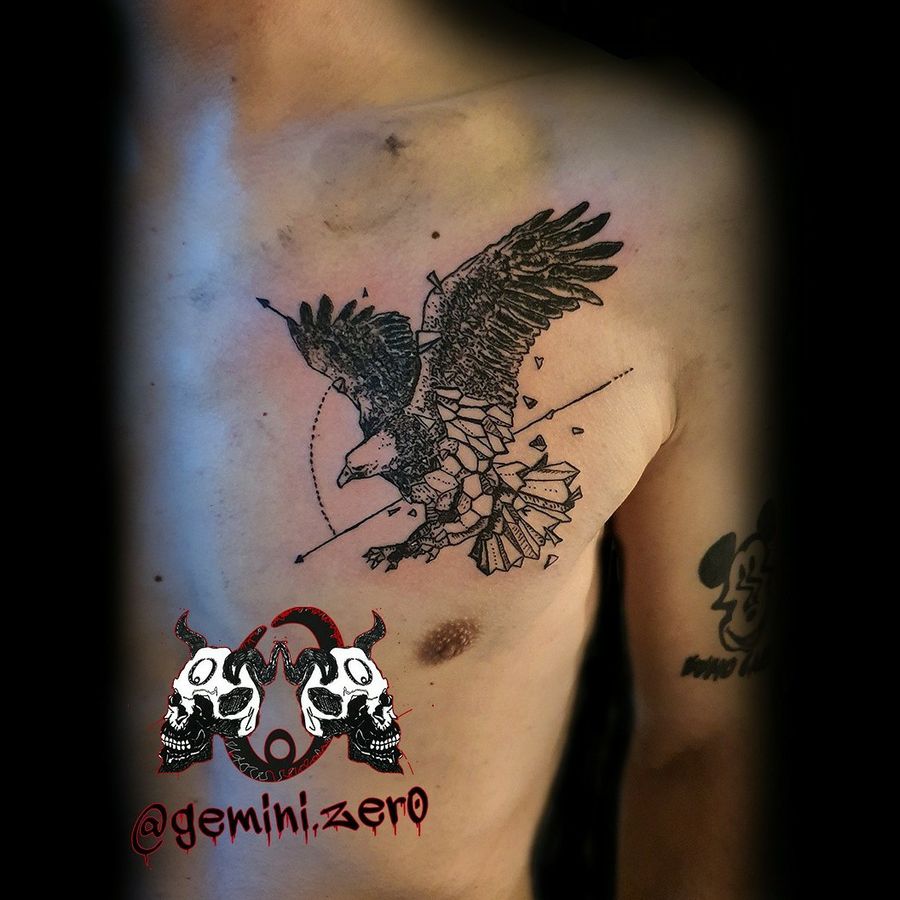 Title: "Where Eagles Dare #geminizero #inkmachines #cheyennetattoo #fkirons #neocartridges #cheyennecartridges #fusionink #eternalink #intenzeink #dermalizepro #h2oceanaftercare #hustlebutterdeluxe #unigloves #killerink #electrumstencilproducts #tattoonumb #tattoo #tattoos #ink #inked #inkedmag #tattooistartmagazine #tattooart #tattooartistmagazine #tattoodo #tattoolife #illustrativetattoo #eagletattoo #bird #eagle
