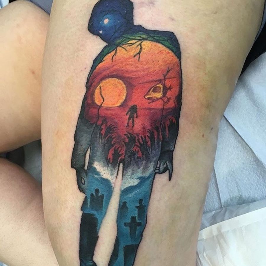 Illustrated Dawn of the Dead tattoo by Kelly Gormley