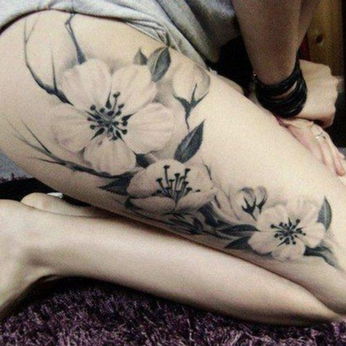 Sakura Leg Tattoo #sakura #cherryblossom #leg #blackandwhite