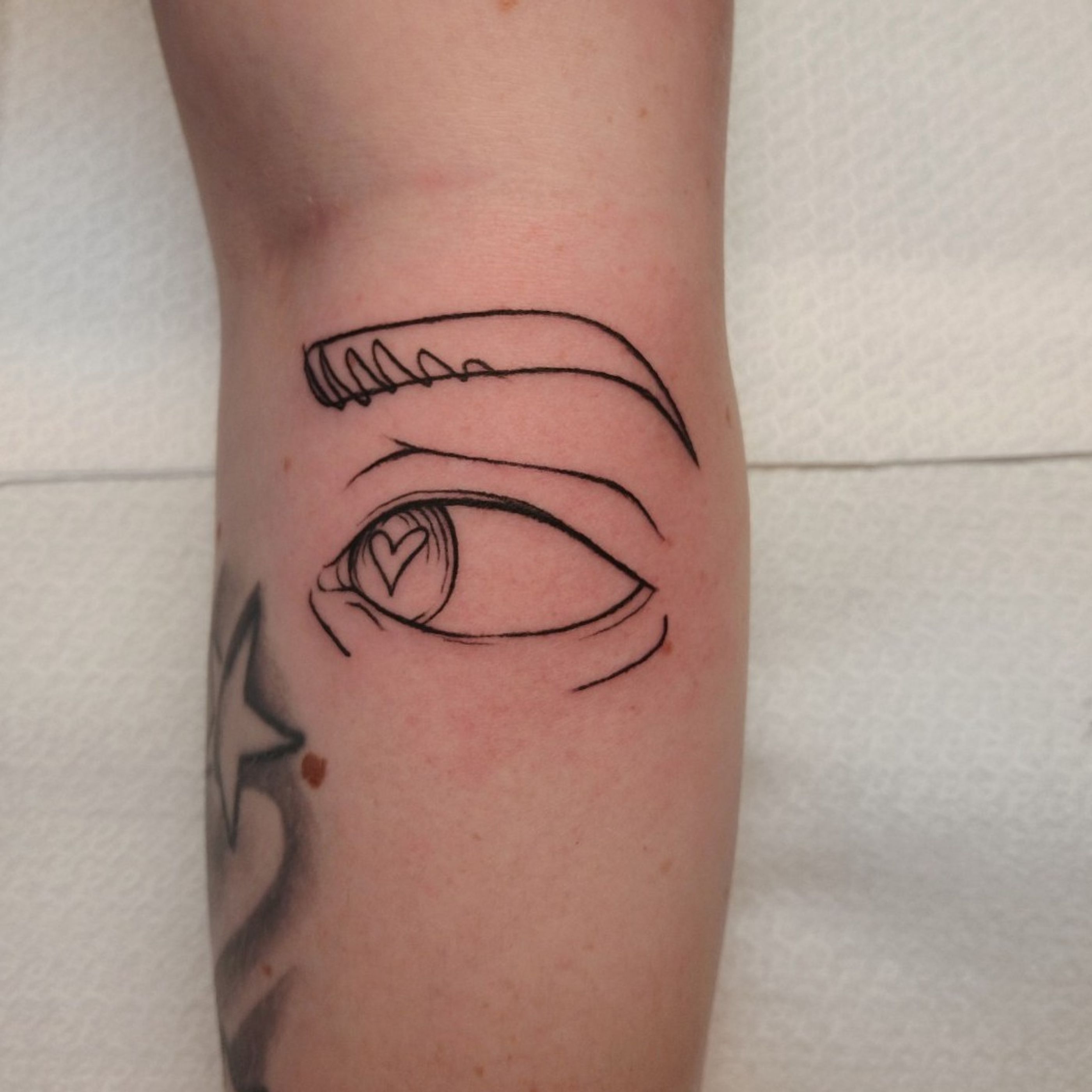 Fine line eye on lower arm