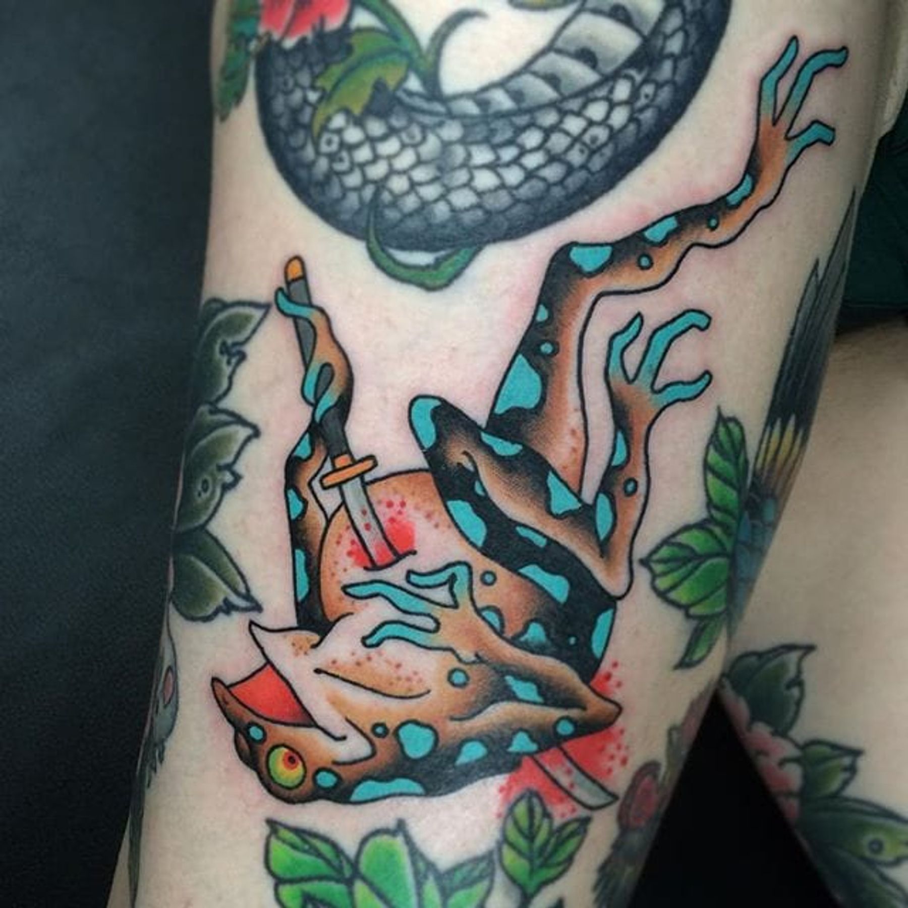 Seppuku Frog Tattoo by Fran Massino #frog #frogtattoo #seppuku #seppukutattooo #japanese #americanjapanese #westernjapanese #japanesedesigns #traditionaltattoos #traditional #FranMassino