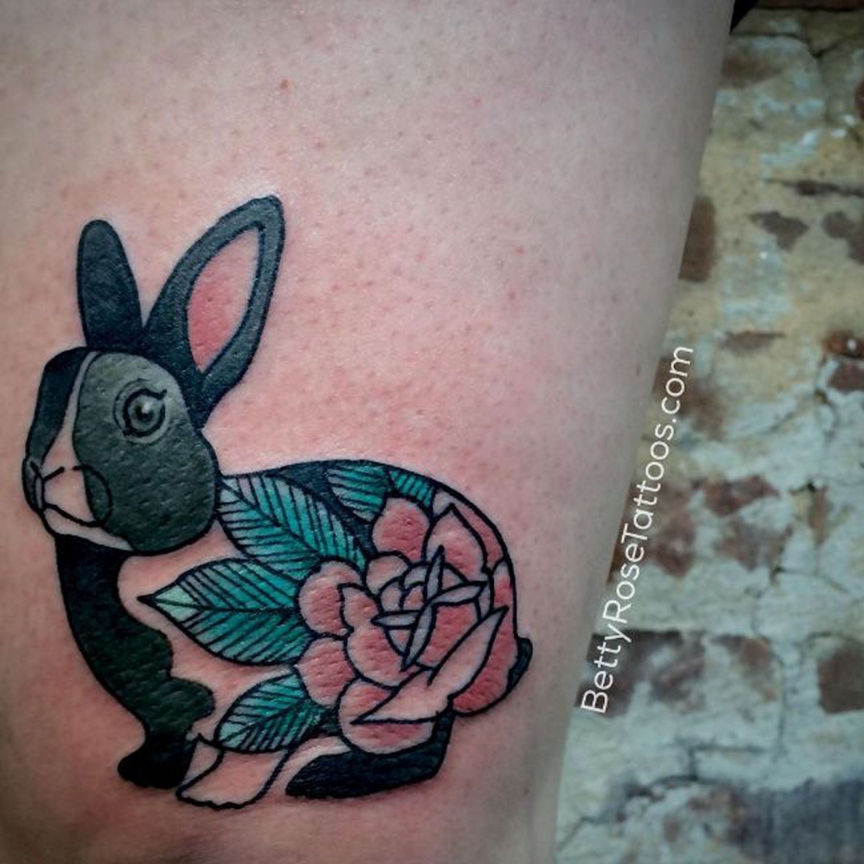 Bunnies too! Bunny tattoo by Betty Rose #BettyRose #linework #bunny #rose #flower (Photo: Instagram)