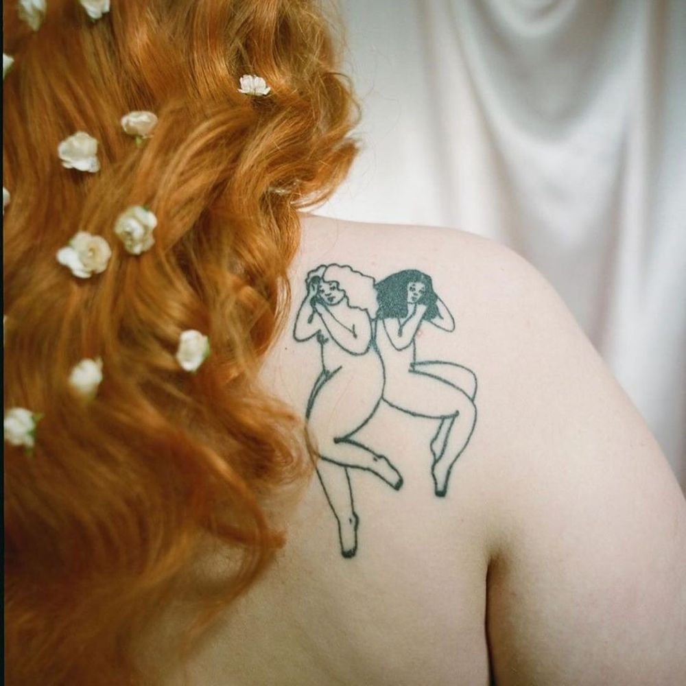 Frances Cannon illustration tattoo on honeykinny for Polyester Magazine. Photographed by Carina Kehlet Schou #FrancesCannon #illustrative #body #nude #love #sleep #cuddle #cute