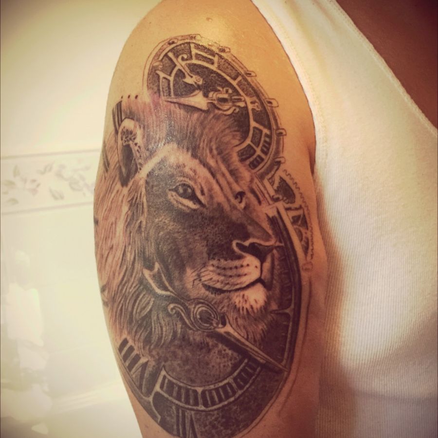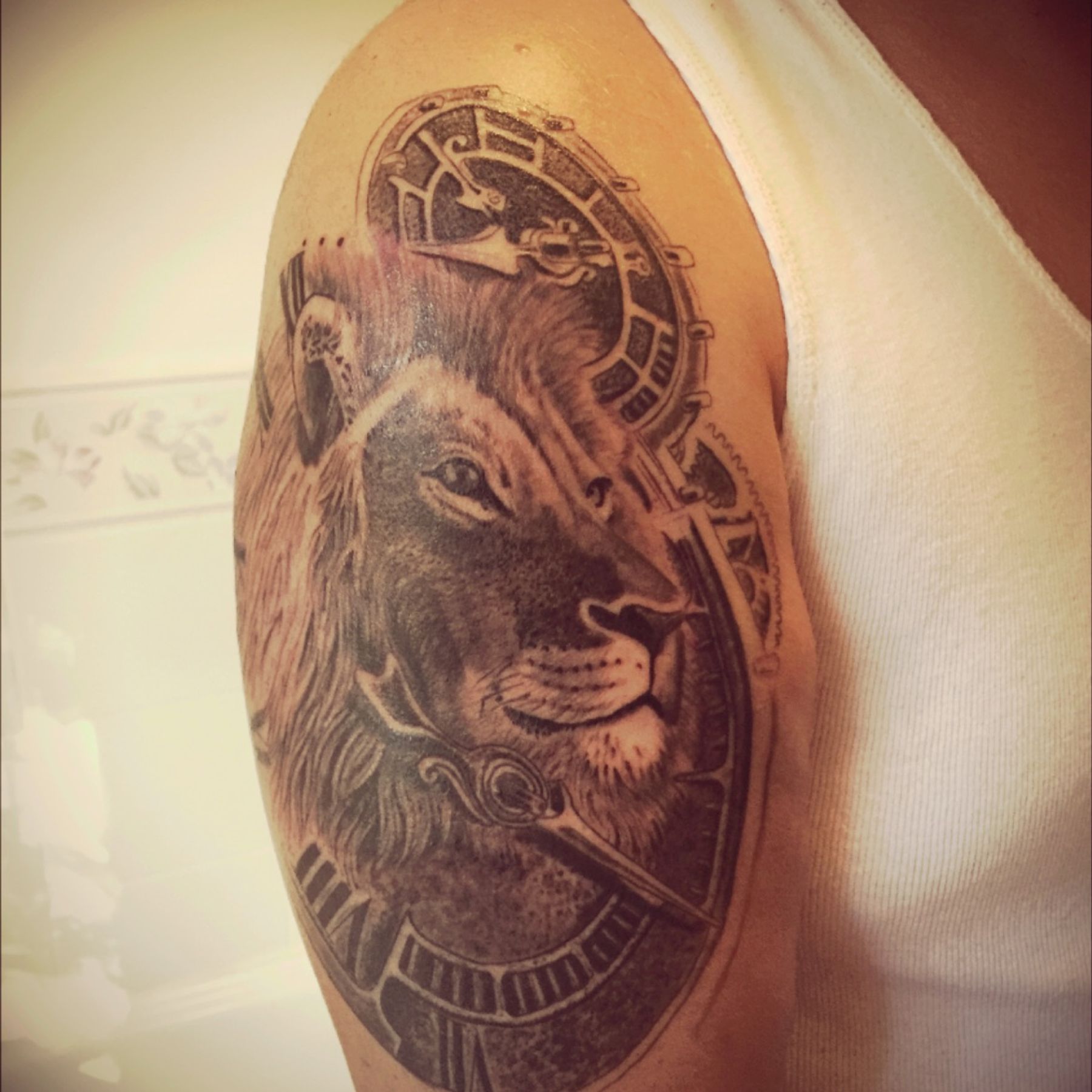 Got my first tattoo when i turned 40 and wanted the moment in time and strength of a lion put on my body for life!