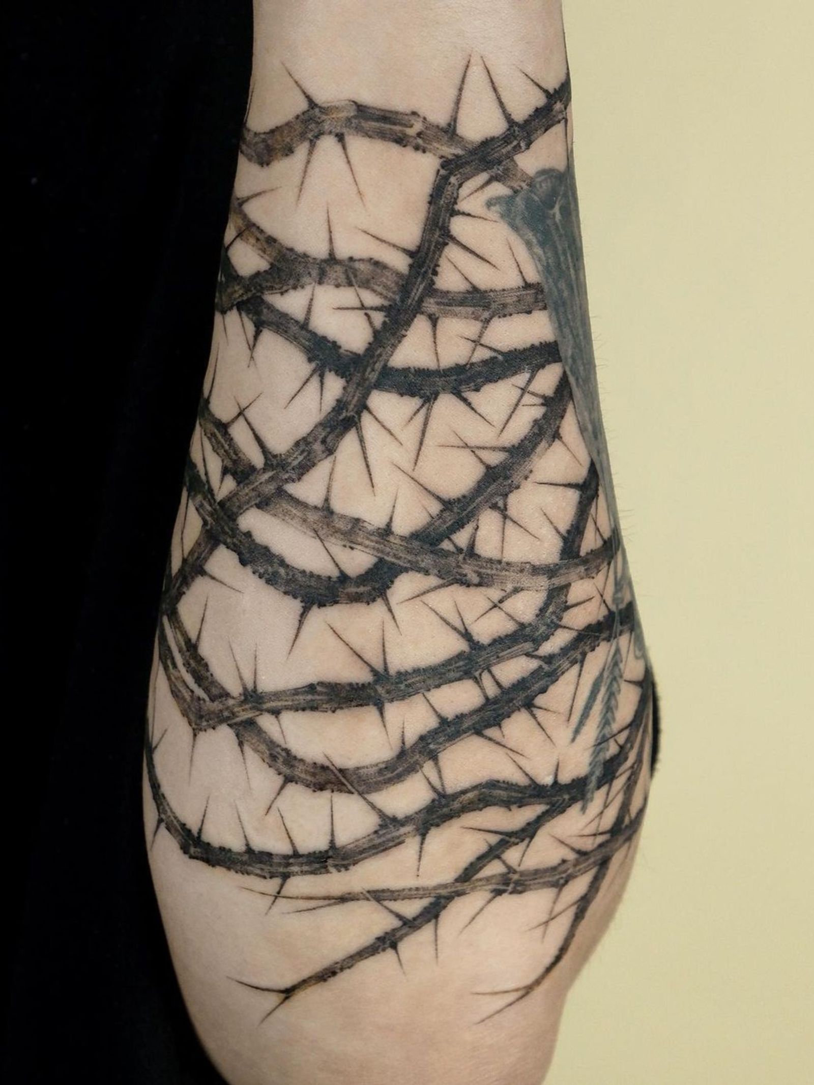 Painterly tattoo by Ati #Ati #tattooistati #koreanart #koreantattoo #koreantattooist #painterly #fineart #thorns