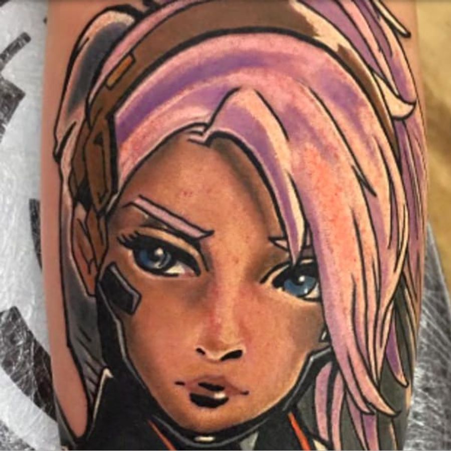Mercy by Damien Cain! #overwatch #overwatchtattoos #gamertattoos #mercy #damiencain