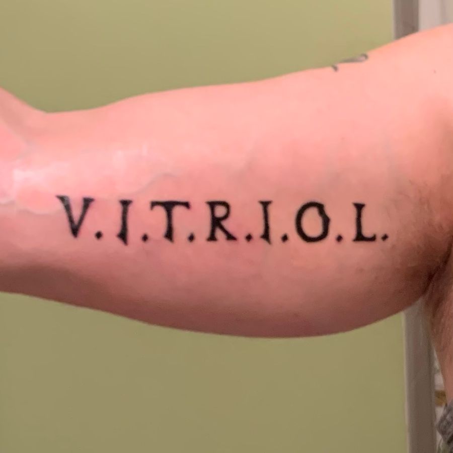 "V.I.T.R.I.O.L." or vitriol (sulphuric acid) is interpreted as "visita interiora terrae, rectificandoque, invenies occultum lapidem", or "visit the interior of the earth, and purifying it, you will find the hidden stone." #alchemy #chamberofreflection #masonic