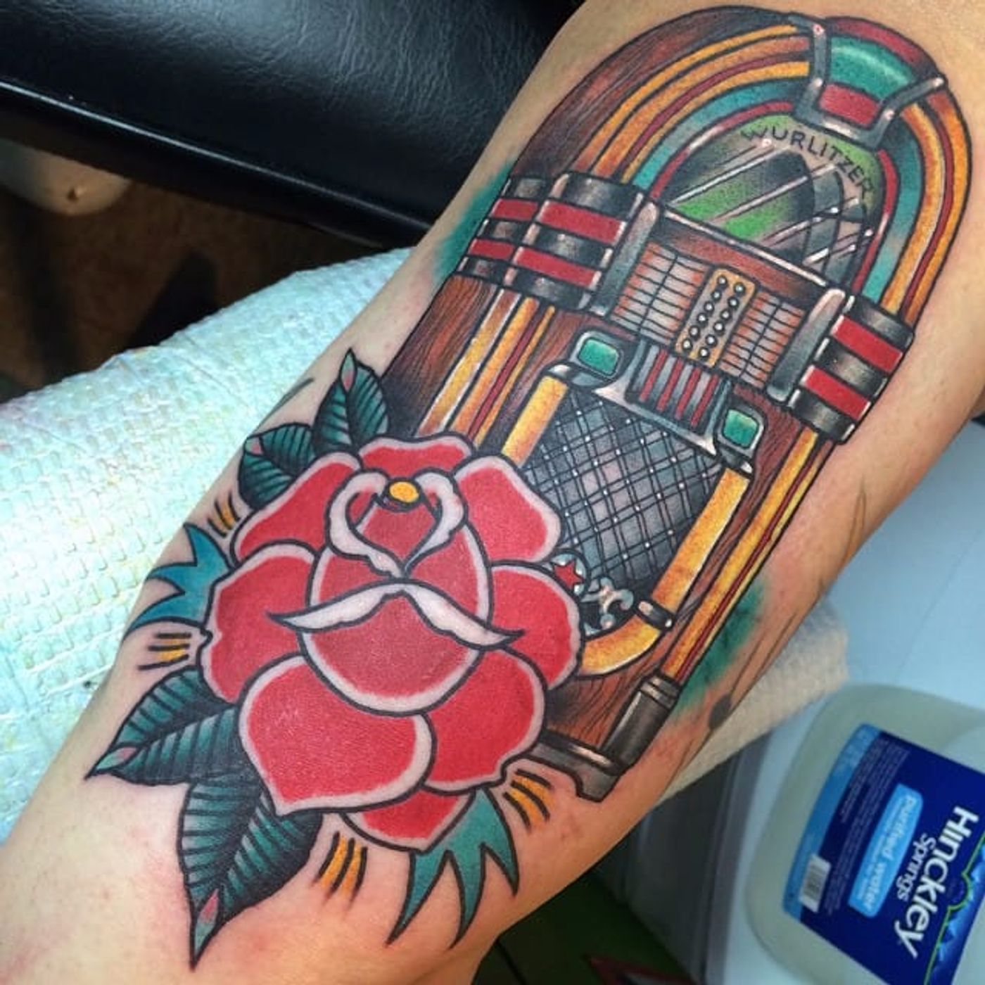 Jukebox tattoo by Jon Bass #jukebox #music #traditional #JonBass