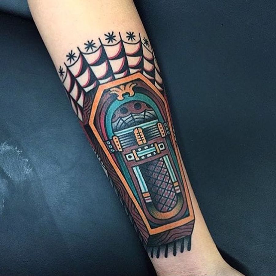 Jukebox tattoo by Almagro Tattooer #jukebox #music #traditional #AlmagroTattooer