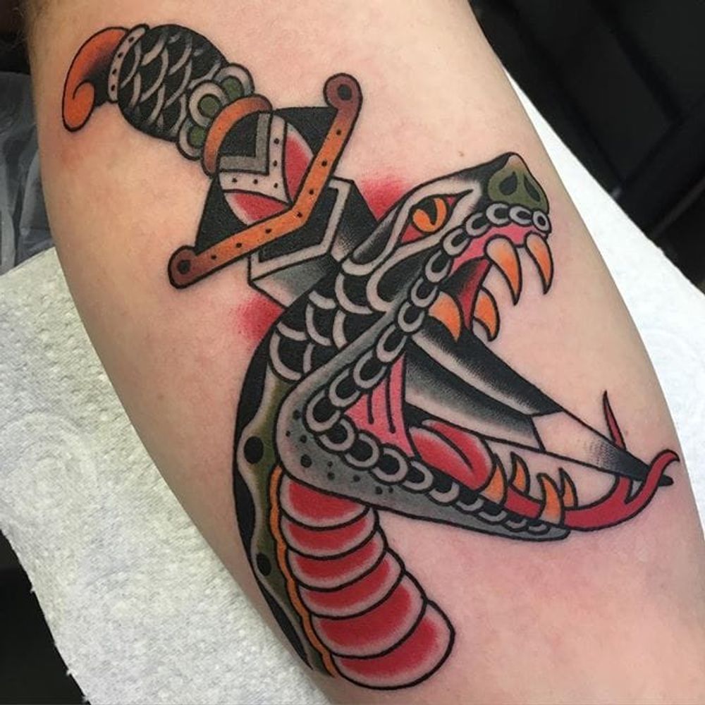Snake Head Tattoo by Lewis Parkin #snakehead #snakeheadtattoo #traditionalsnakehead #traditional #traditionaltattoo #traditionaltattoos #classictattoos #oldschool #oldschooltattoo #traditionalartist #LewisParkin