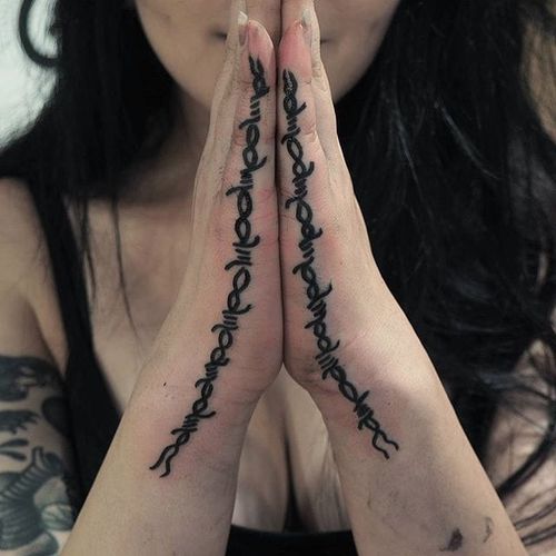 Barbed wire tattoo by Om Kantor. #OmKantor #blackwork #sacredgeometry #handpoke #telaviv #barbedwire #btattooing #blckwrk