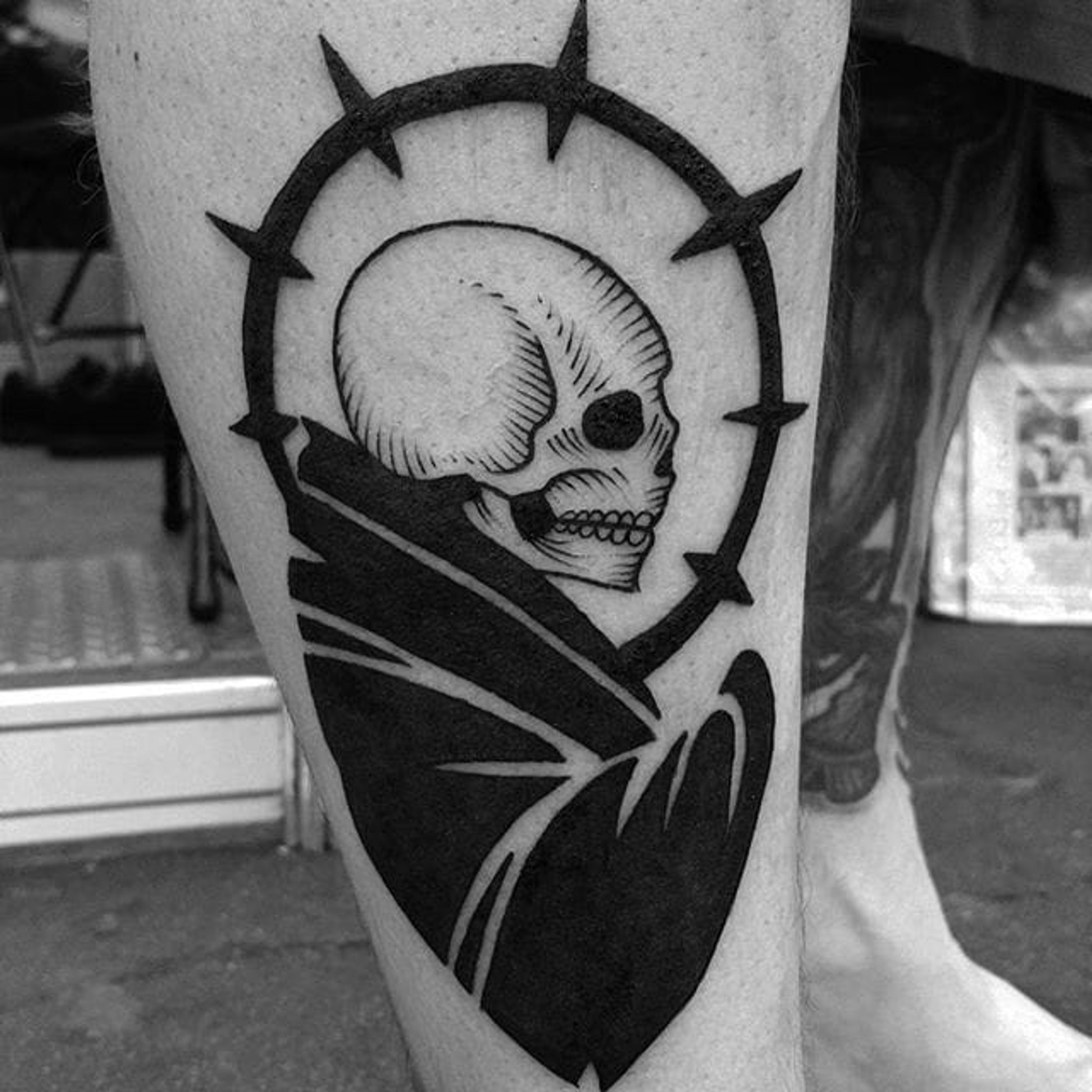 Flat Black Skull Tattoo by Matt Pettis @Matt_Pettis_Tattoo #MattPettis #MattPettisTattoo #Black #Blackwork #Blacktattoo #Blacktattoos #London #Skull #btattooing #blckwrk