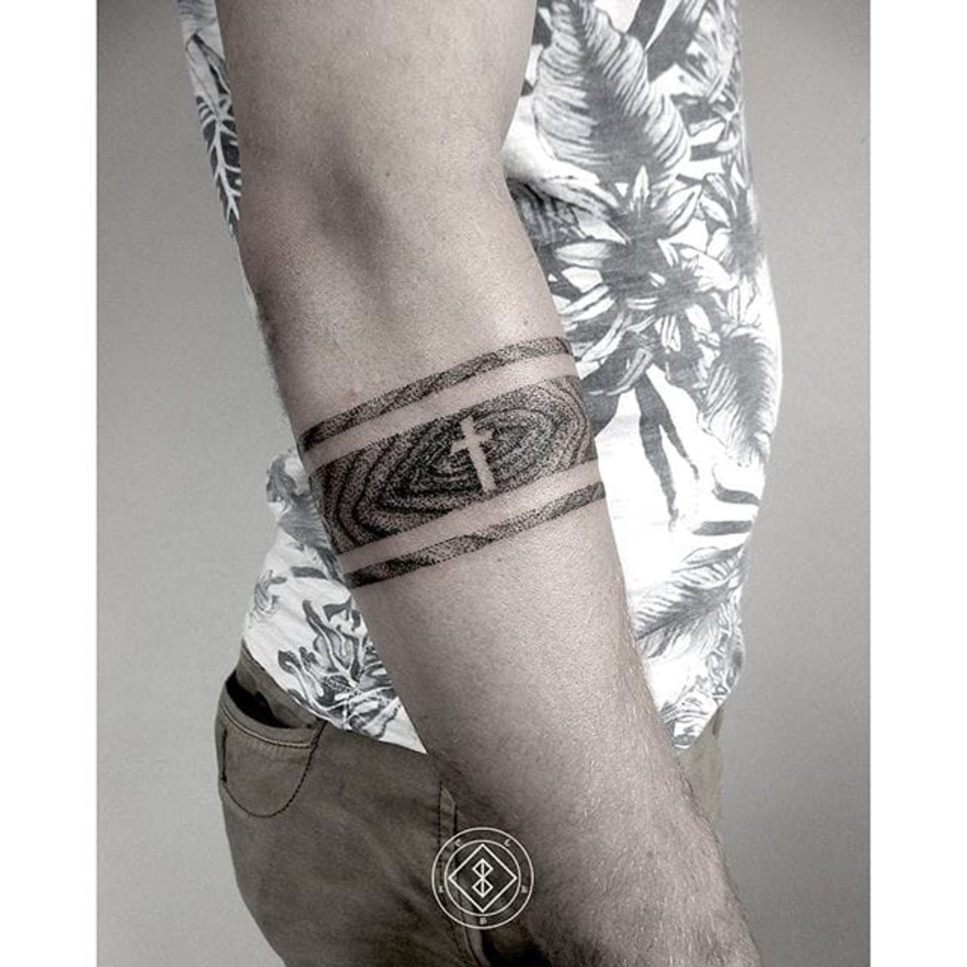Arm band pointillism by Bleck. #Bleck #pointillism #dotwork #armband blackwork #btattooing #cross