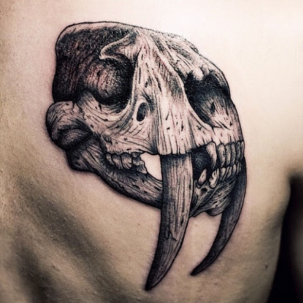 Saber tooth skull tattoo #sabertooth #cat #big