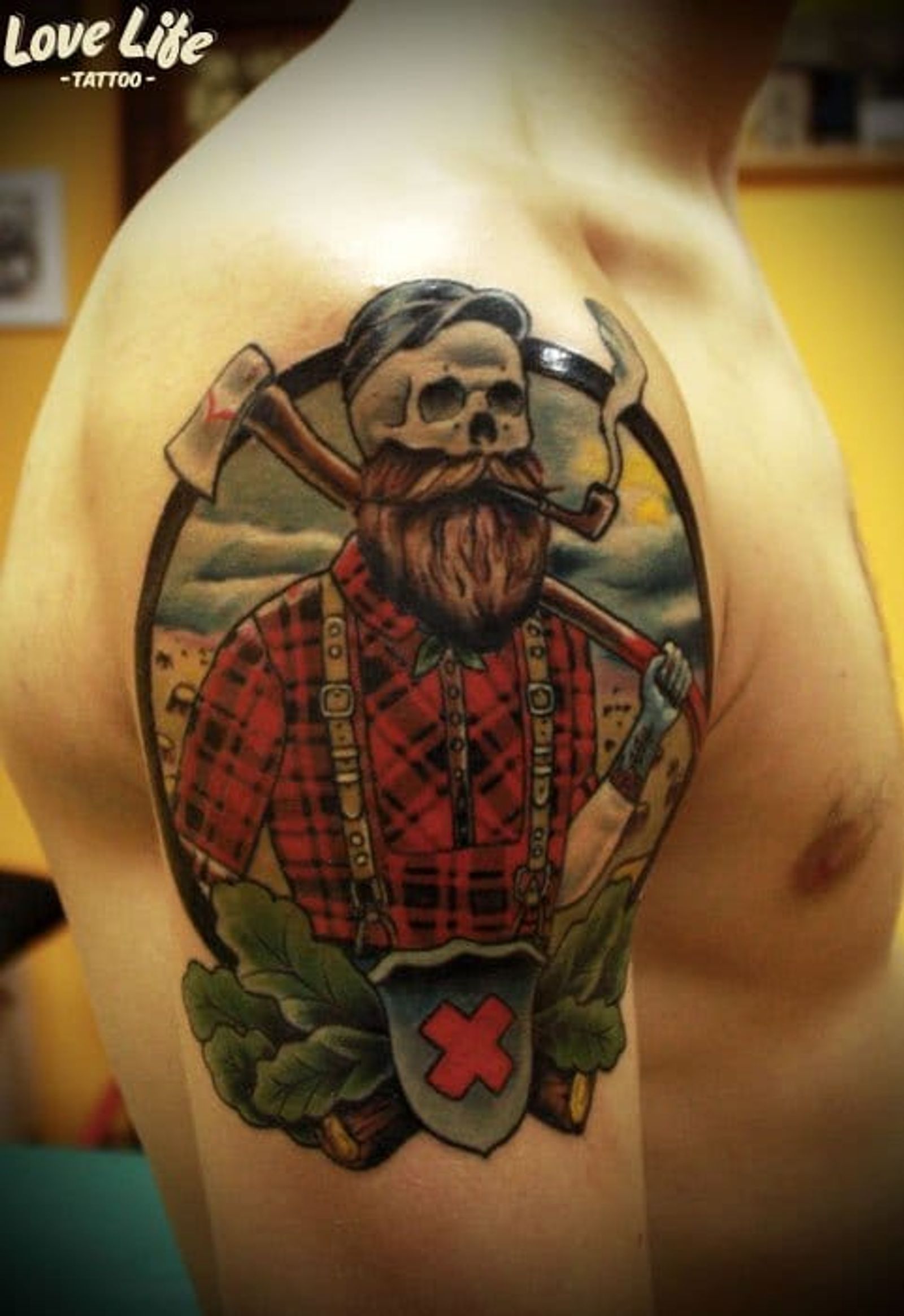 Lumberjack Skeleton Tattoo by Love Life Tattoo