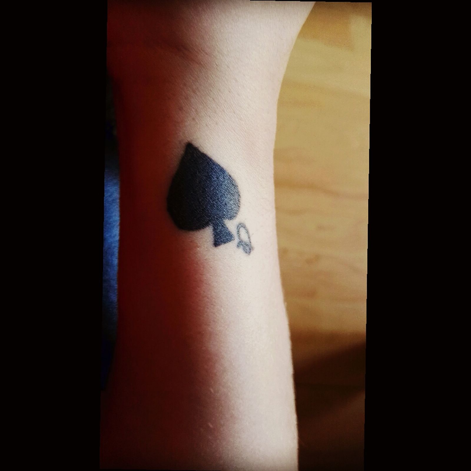 #queenofspades #spades #queen #wrist #wristtattoo #blacktattoo #smalltattoo
