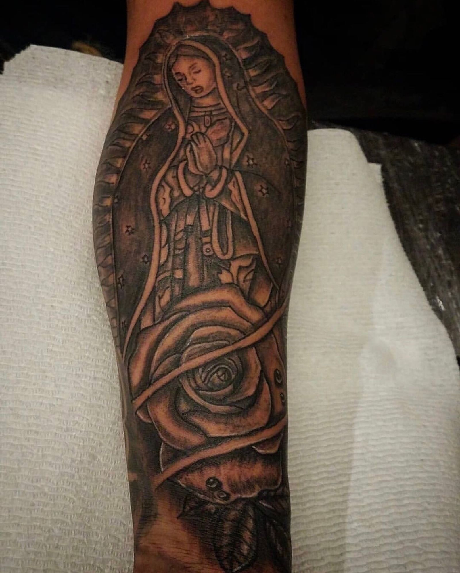 virgin mary tattoo #virginmary #chicano #rose #selftuaght