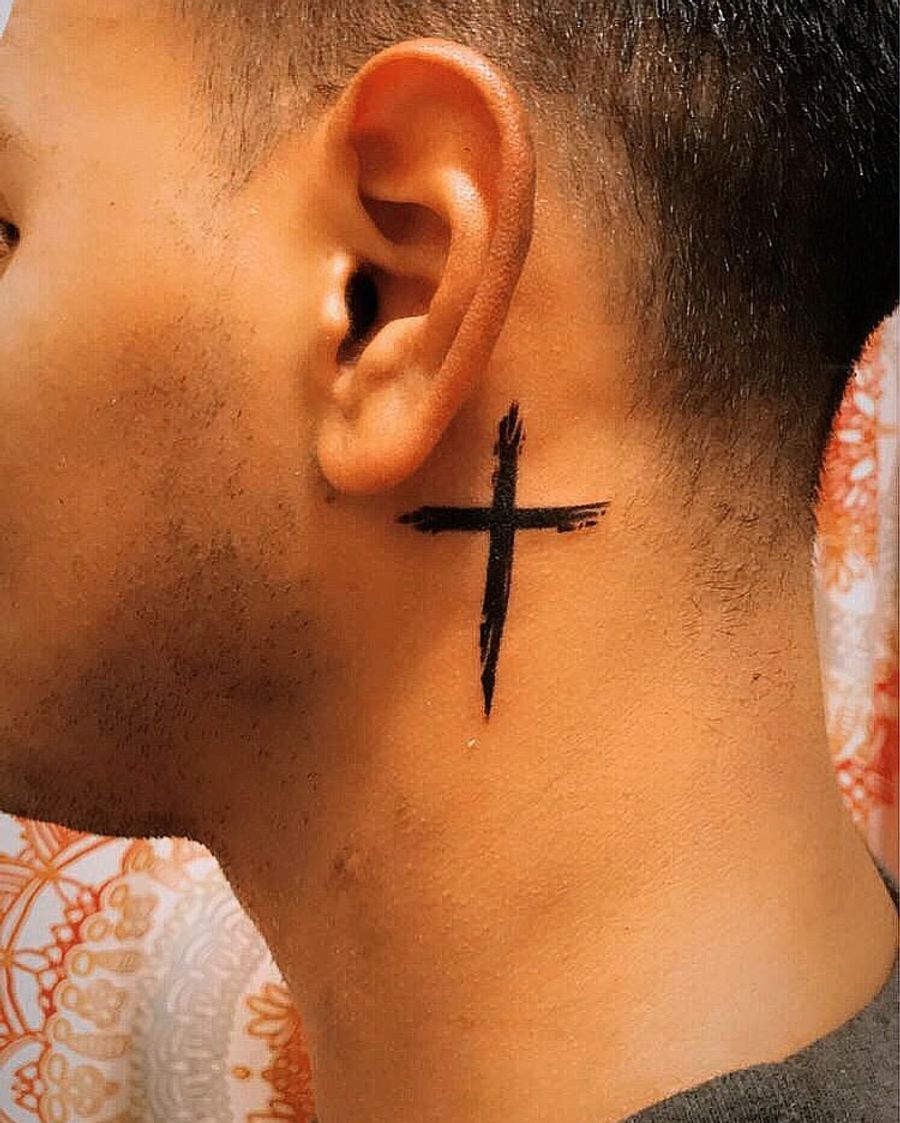 • CROSS TATTOO • #crosstattoo #cross #necktattoo