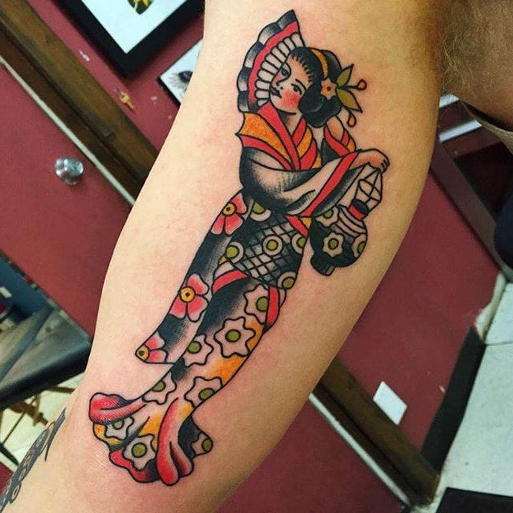 Traditional geisha tattoo by Randy Conner. #traditional #RandyConner #traditionalJapanese #Japanese #geisha