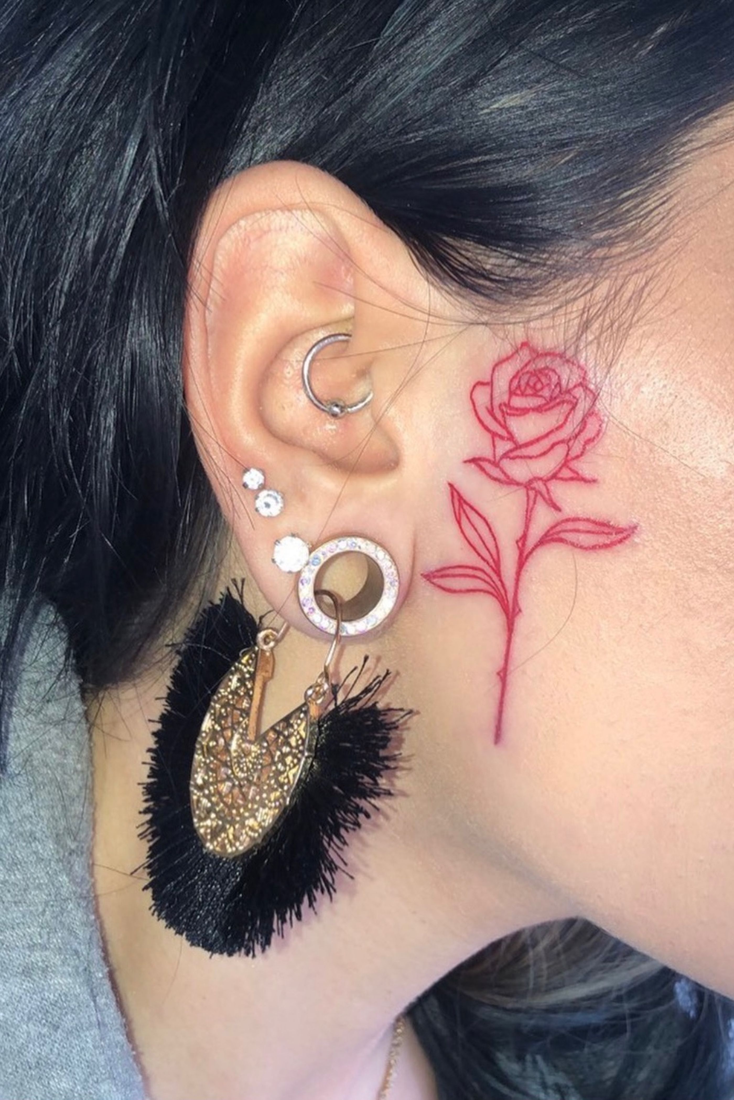 Red rose outline - Done by Jess at New Generation in Indy #flower #indianapolis #rose #outline #red #facetattoo