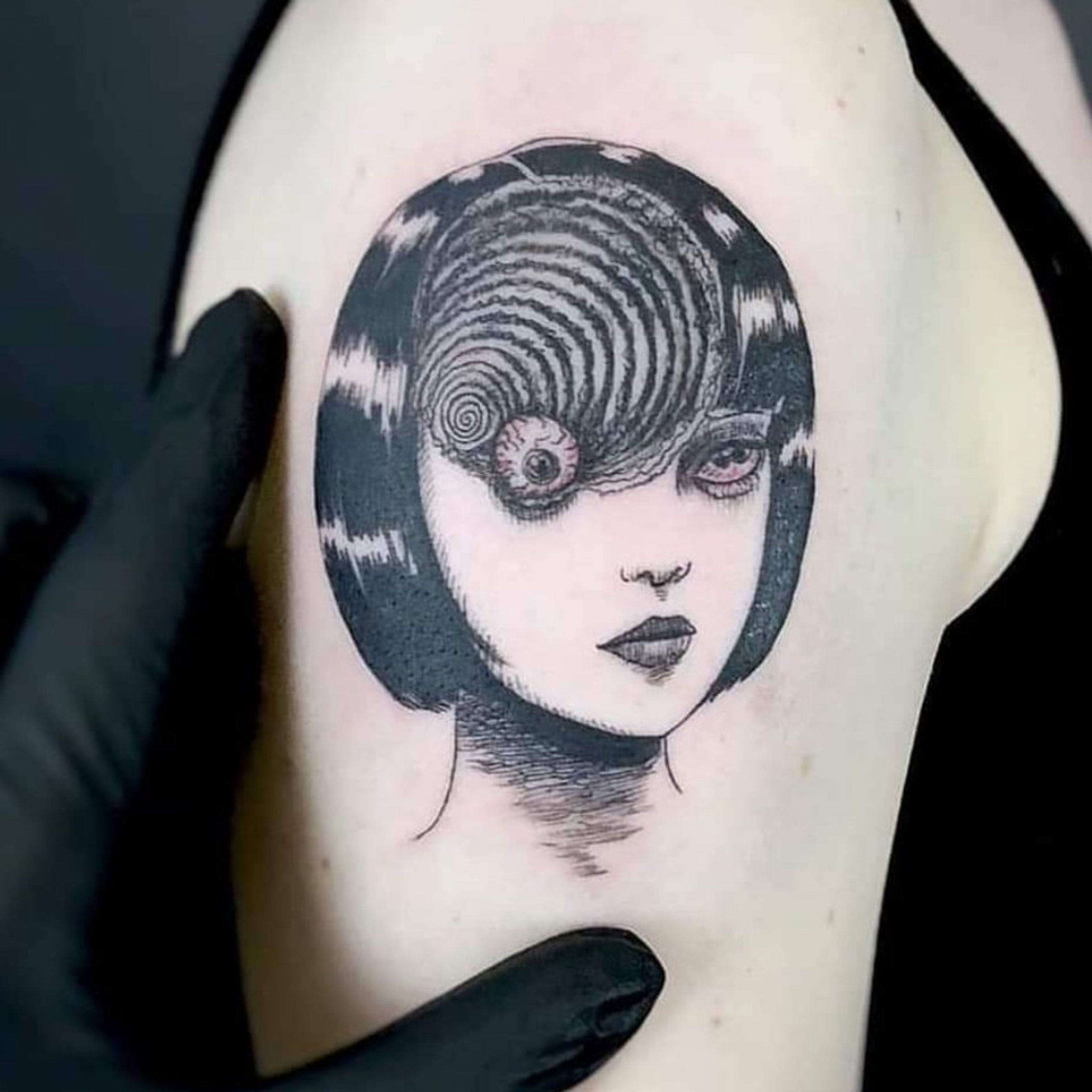 My 2nd Tattoo. By @Kimchi.tattoos @hiddenmoontattoo Azami Kurotani By. Junji Ito Book. Uzumaki