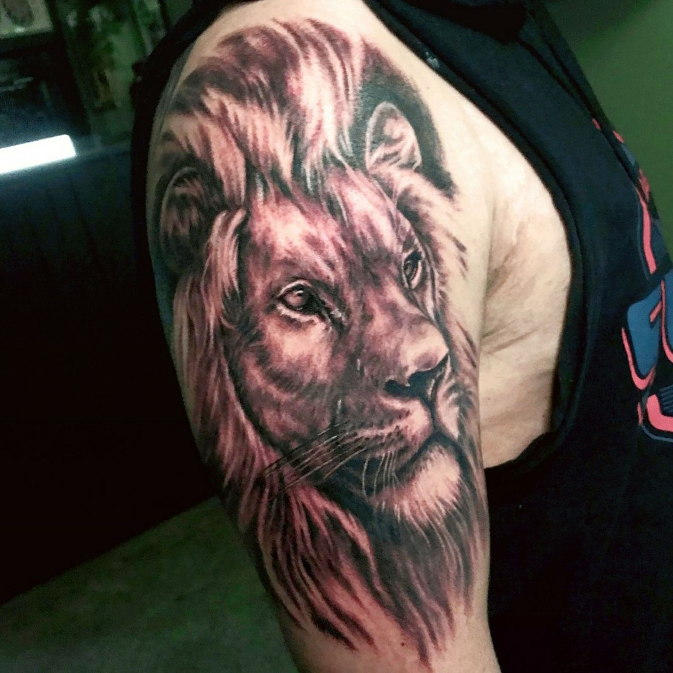#lion #realism #lionhead #lionmane #blackandgrey #malelion #halfsleeve #armlion #hyperrealism #tattoooftheday