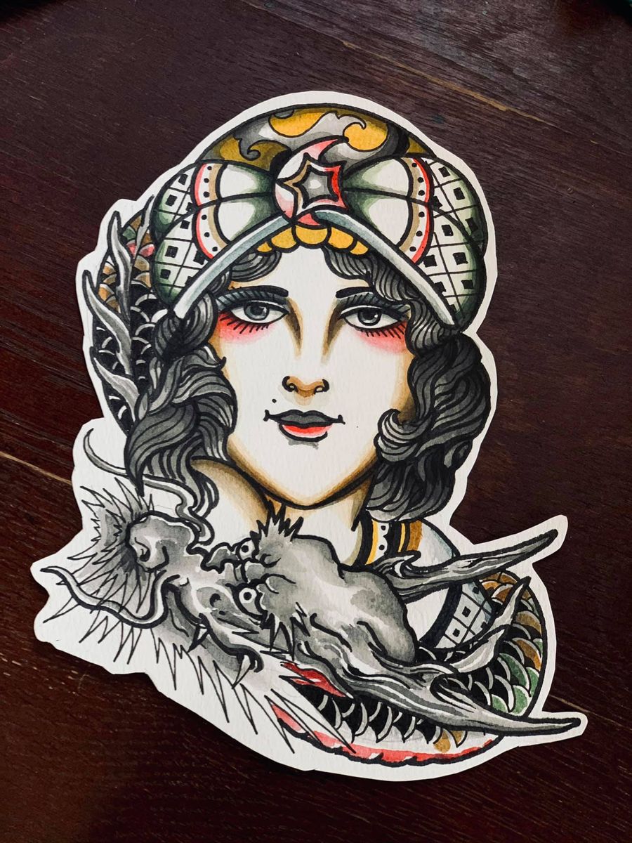 Traditional Flash tattoo design by Thaigaz Swallow #Goldendaggertattoobkk