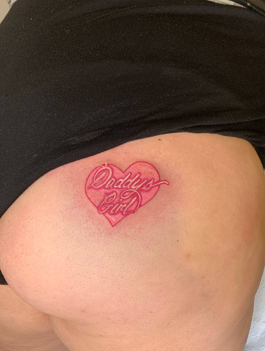 Daddy’s girl, buttcheek tattoo, neon light tattoo