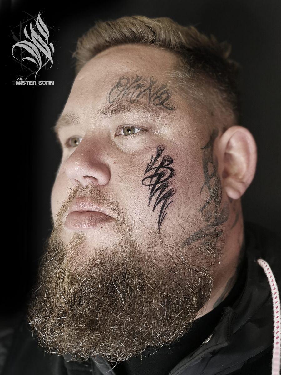 RAG N BONE MAN - NEW 'LBM' FACE TATTOO BY MISTER SORN. CUSTOM FATCAP STYLE MONOGRAM. FOR HIS NEW ALBUM - LIFE BEYOND MISADVENTURE