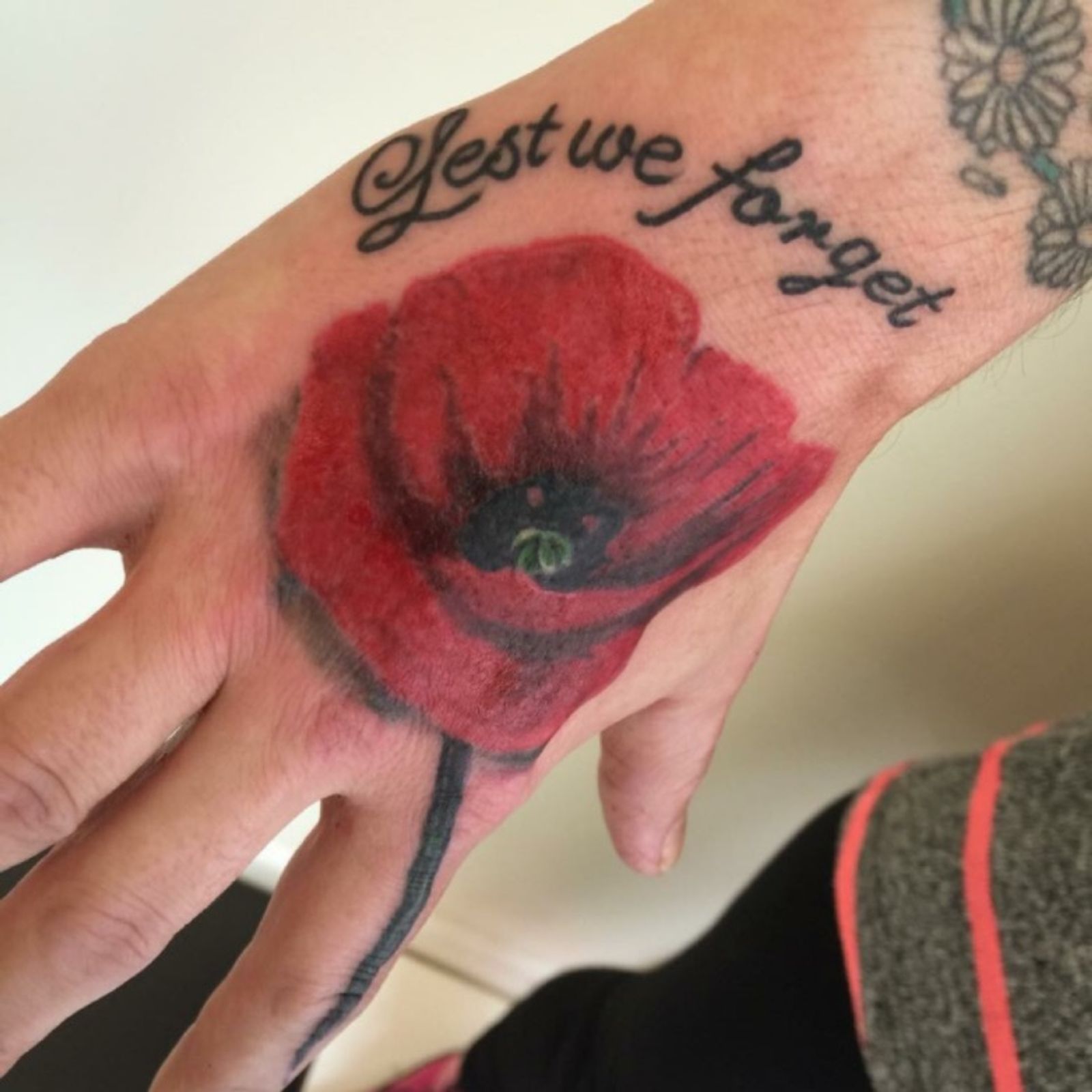 #lestweforget #poppy #ww2 #hand #handtattoo #fingertattoo