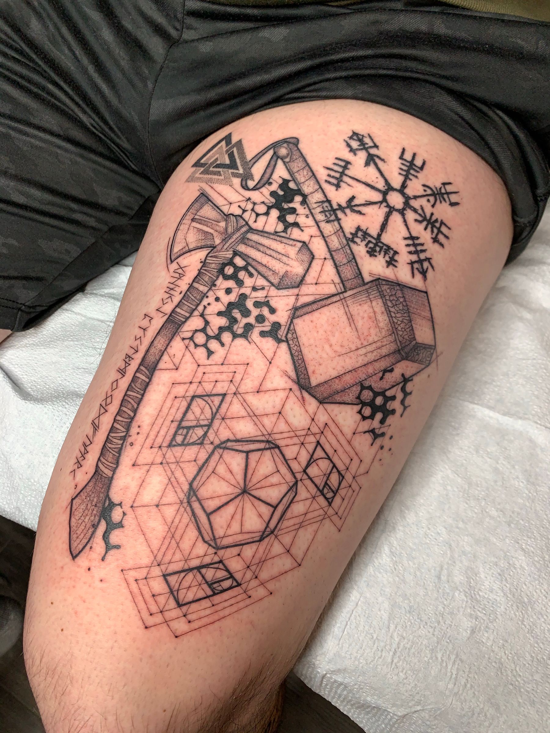 Nordic tattoo 🔥 Custom piece 🔥 #tattoo #ink #fineline #geometry #sacredgeometry #geometrictattoo #abstracttattoo #thebesttattooartist #thebestlines #perfectlines #blackwork #dotwork #delicate #inspiration #linework #tattoodesign #cheyennetattooequipment #equilattera #omfgeometry #geometrip #womantattoo #fibonacci #cutetattoo #thortattoo #marveltattoo #geektattoo #nordictattoo