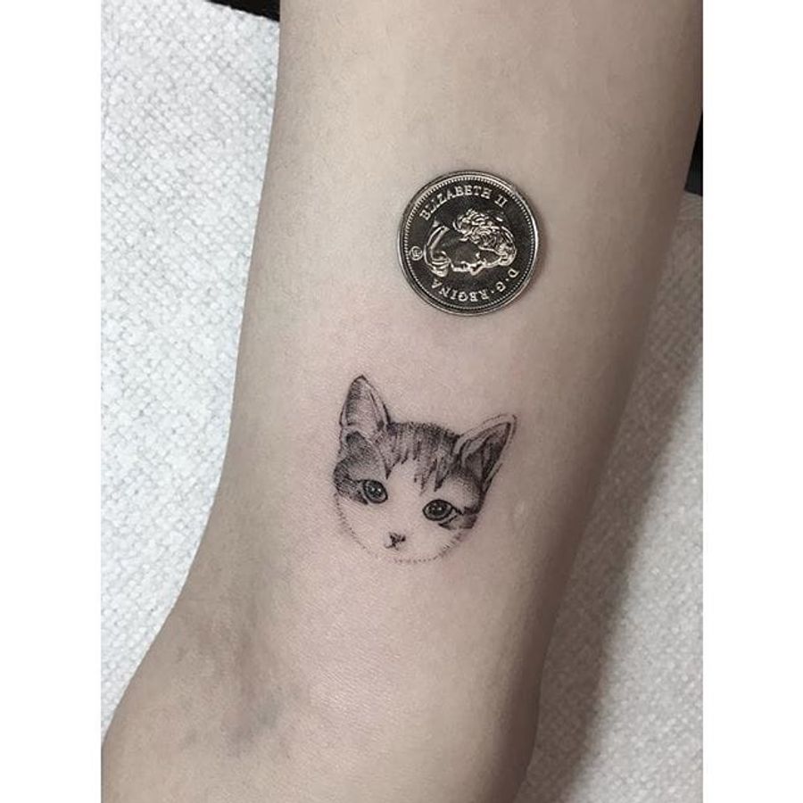 Microtattoo kitty by Zeke Yip. #microtattoo #subtle #minimalist #cat #blackandgrey