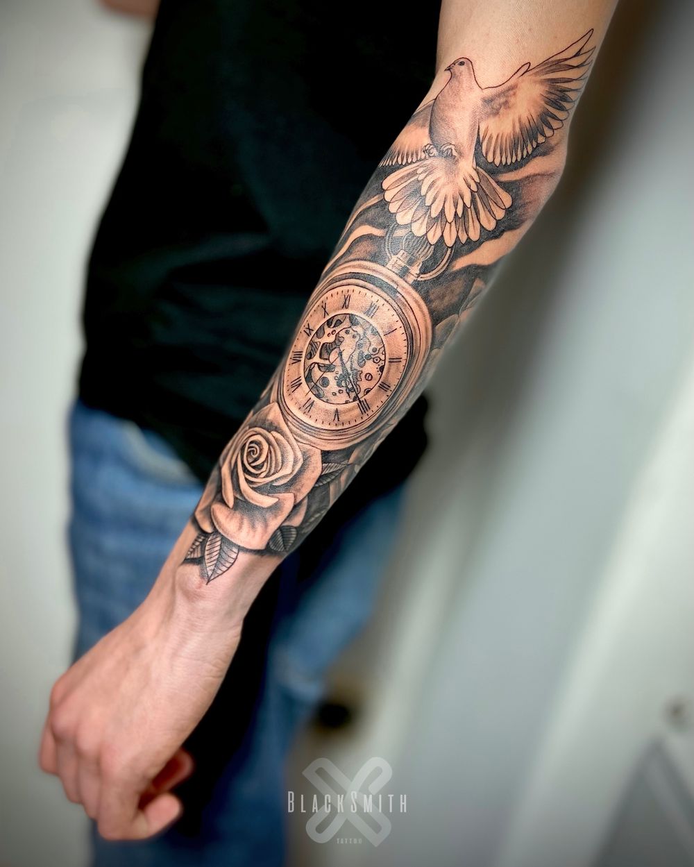 Clock and dove tattoo. @Blacksmith.Tattoo