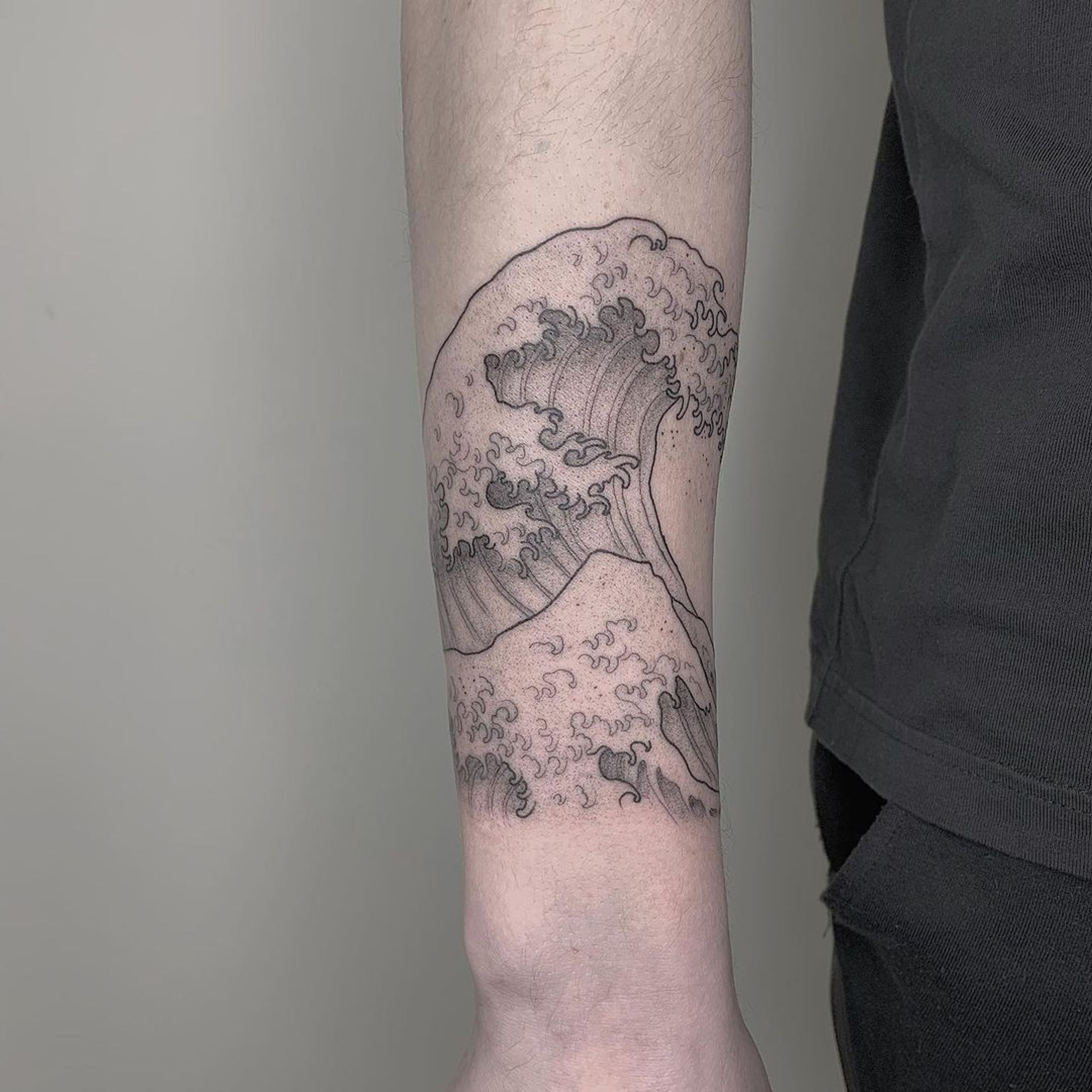 Wavy waves. #waves #sea #fineline #illustrative #black&grey #wavy #armtattoo